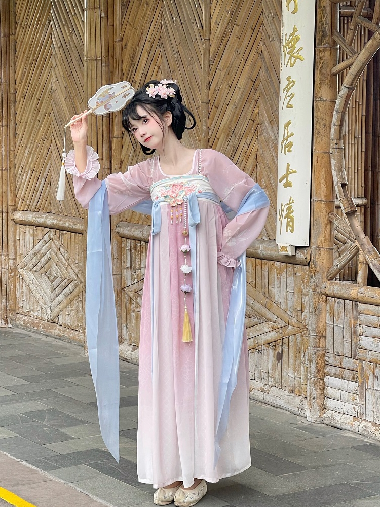 Hán Phục Xuân Hoa Tiên Vũ sẽ đem lại sự thoải mái cho người mặc vì chất voan, lụa rất thoáng khí và mềm mại. Trang phục bao gồm áo, váy và dây; có nhiều size, phần dây lưng còn có thể tăng giảm tùy ý theo số đo của người mặc.
