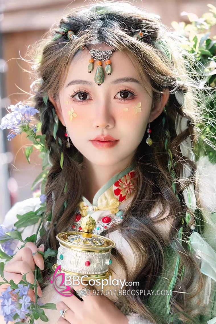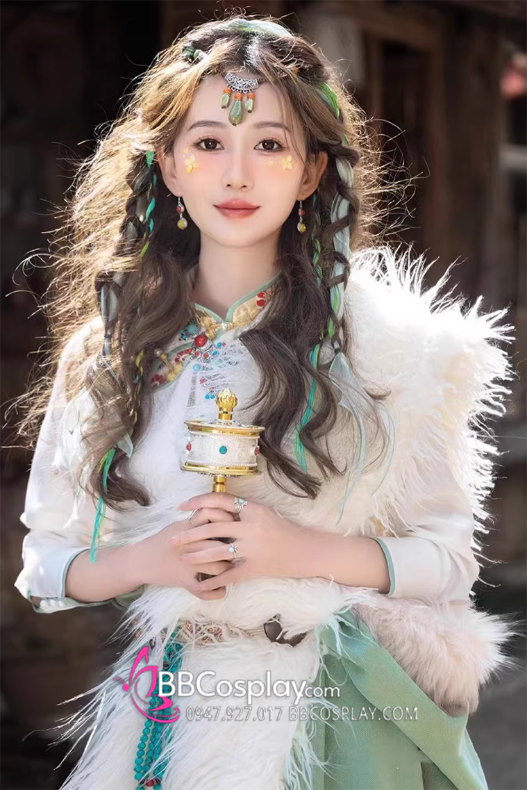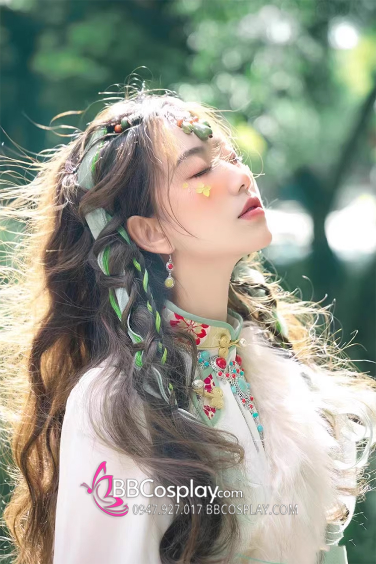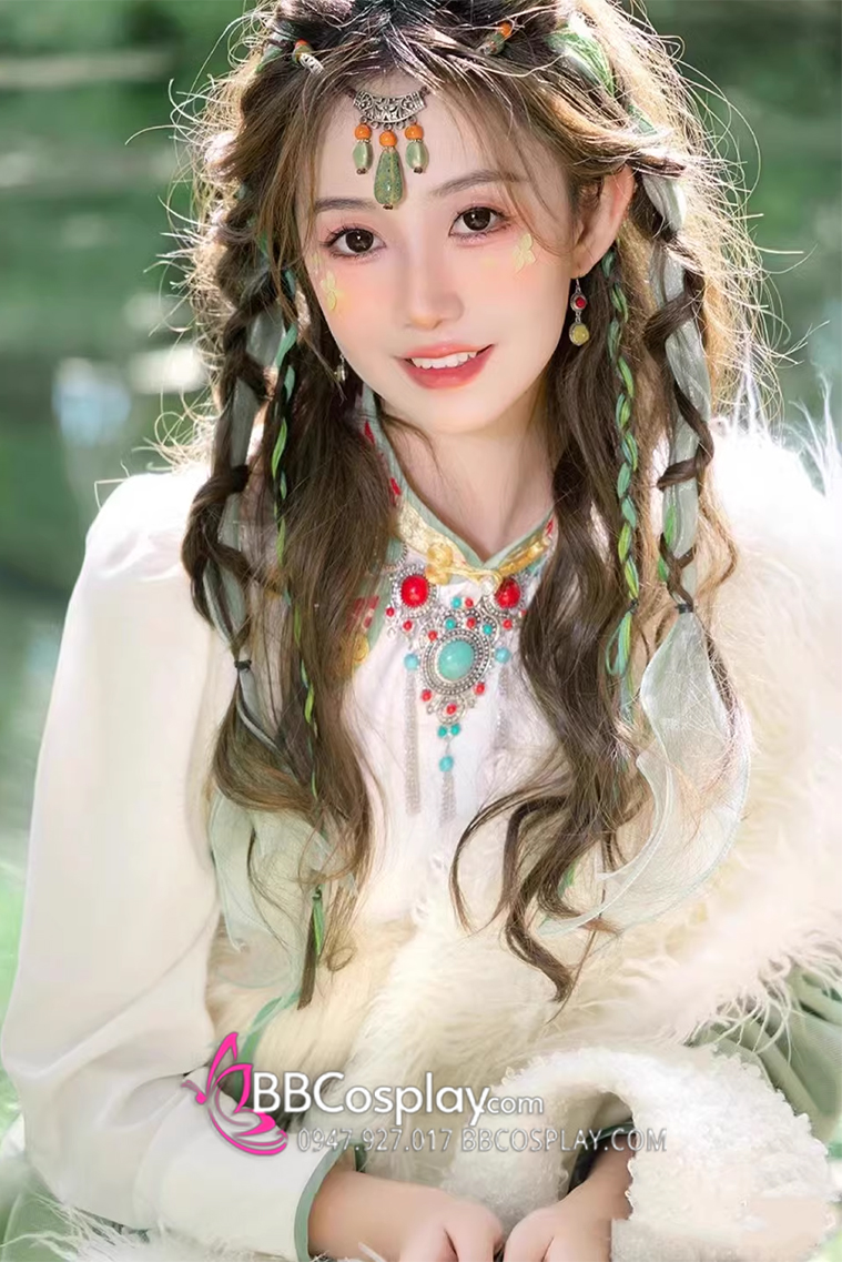 Thành phần: áo + khoác + viền lông + thắt lưng + vòng trang sức đội đầu