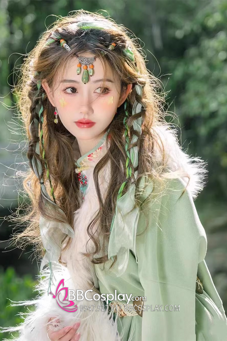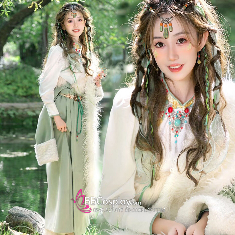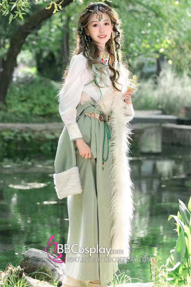 Trang Phục Nữ Mông Cổ Tây Vực Xanh Mạ Pastel