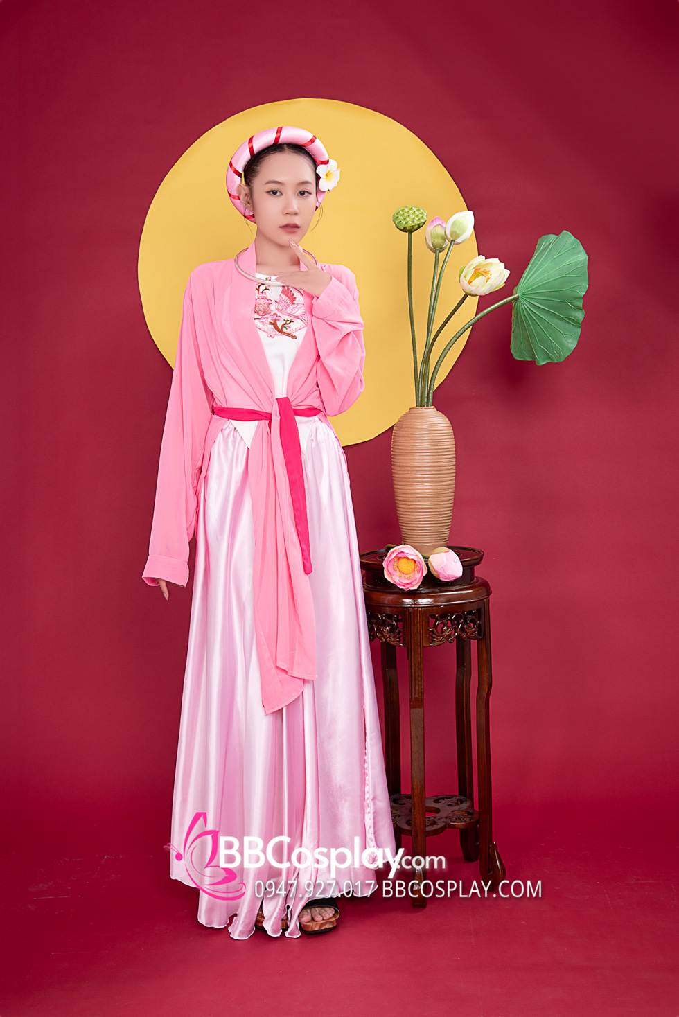 Đồ Nàng Hầu Maid Hồng Tạp Dề Trắng Kèm Nhiều Nơ