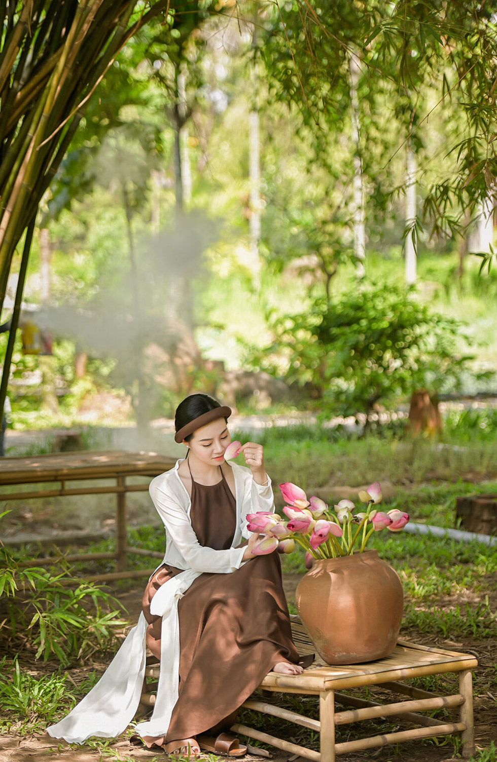 Áo Tứ Thân Trắng Yếm Nâu