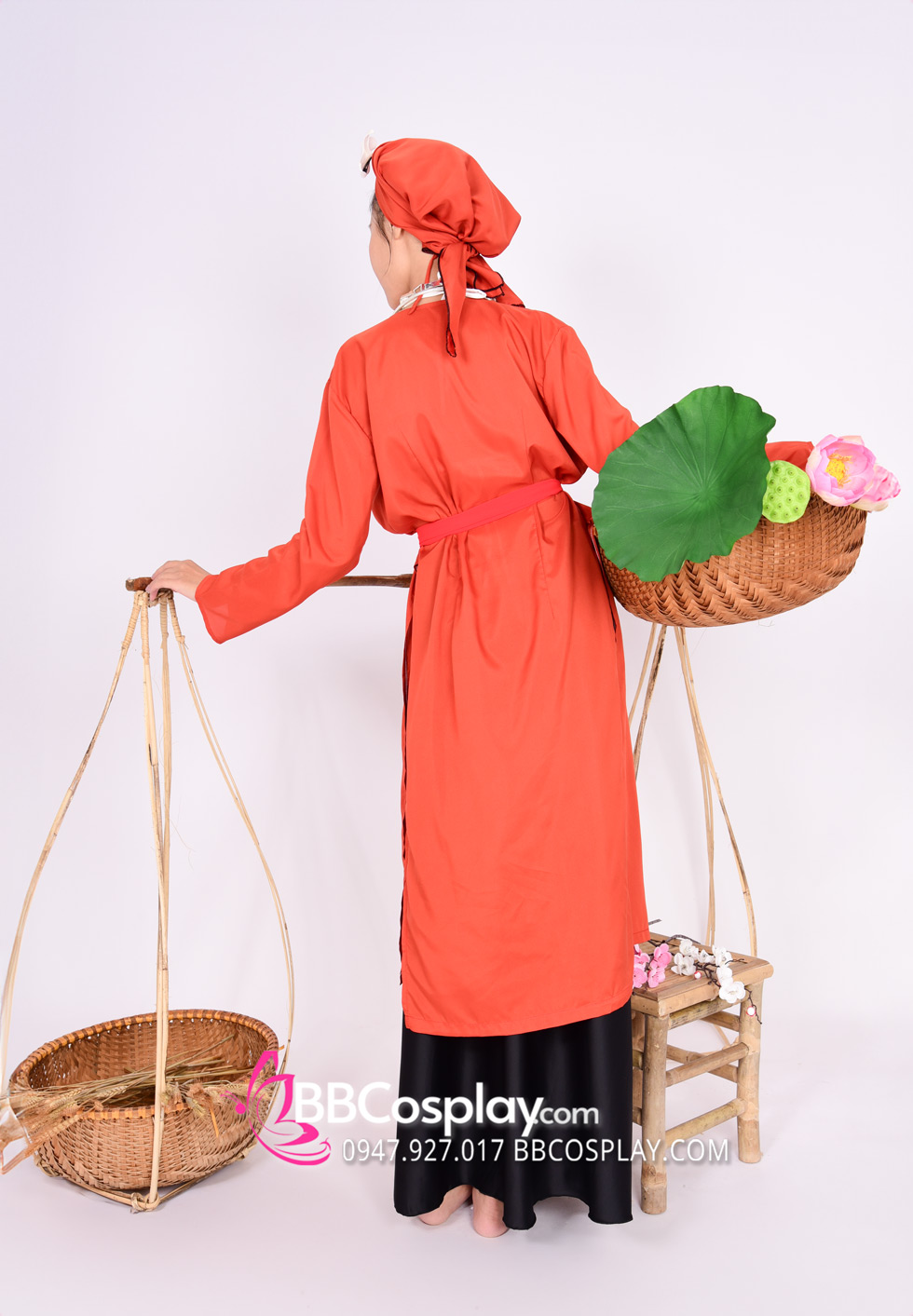 Trang Phục Nàng Hầu Cổ Lá Sen Kèm Tạp Dề Caro - Màu Đỏ