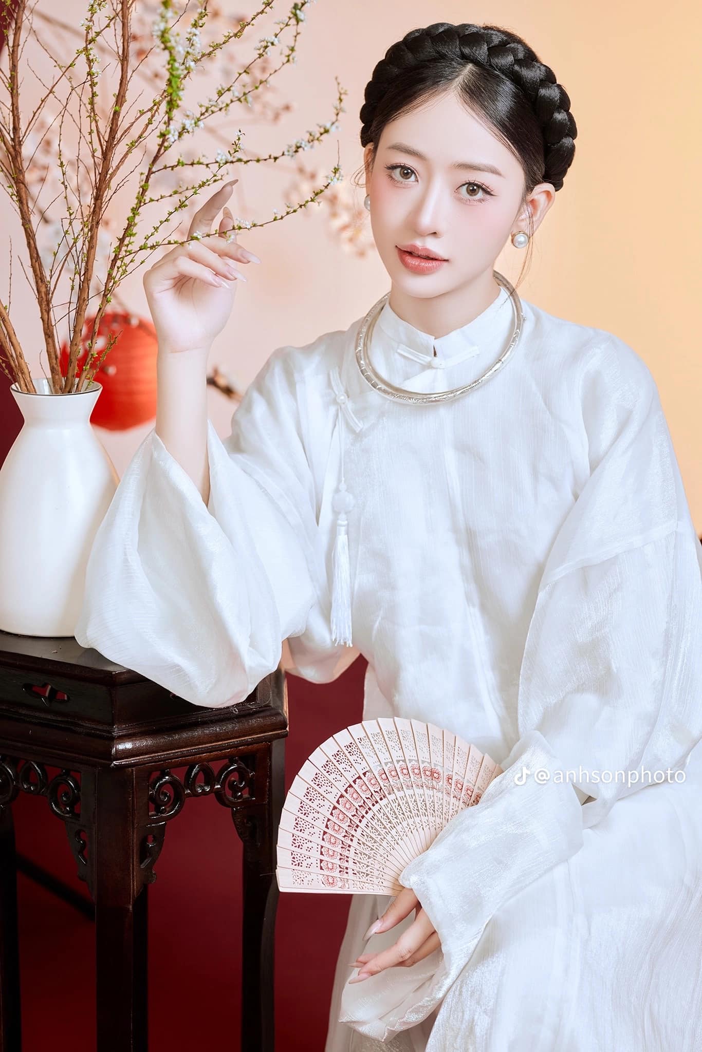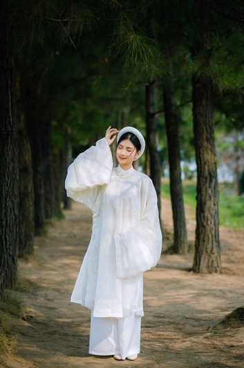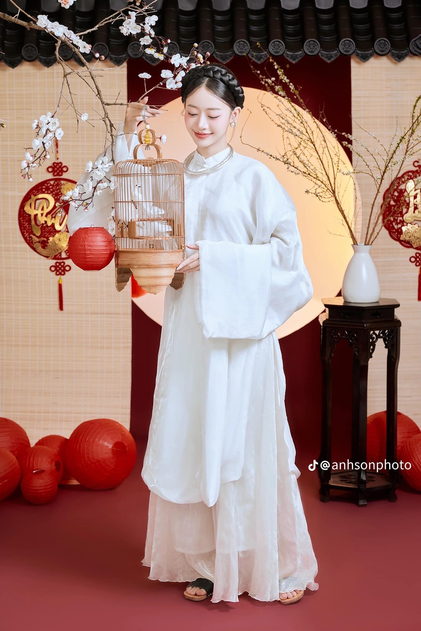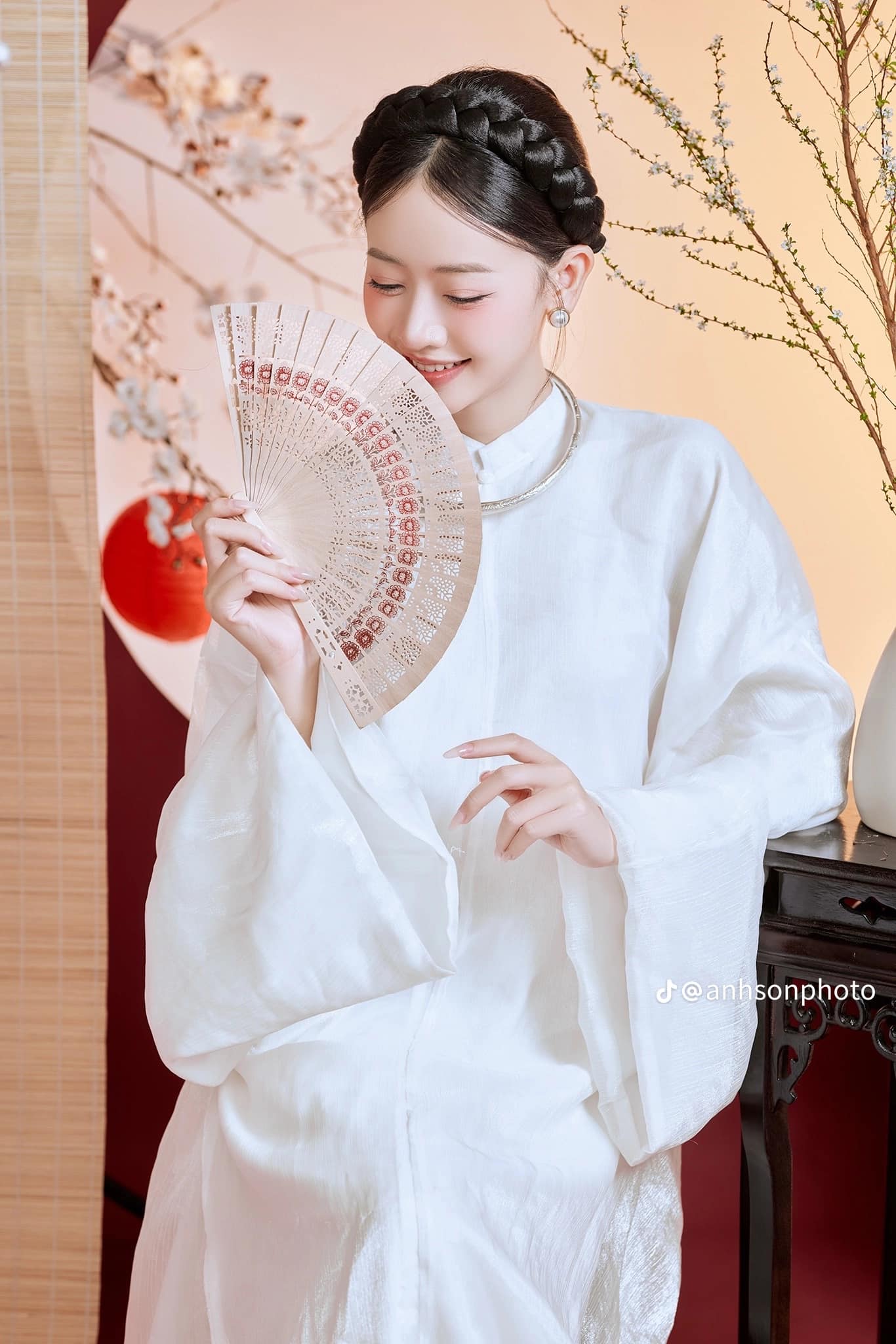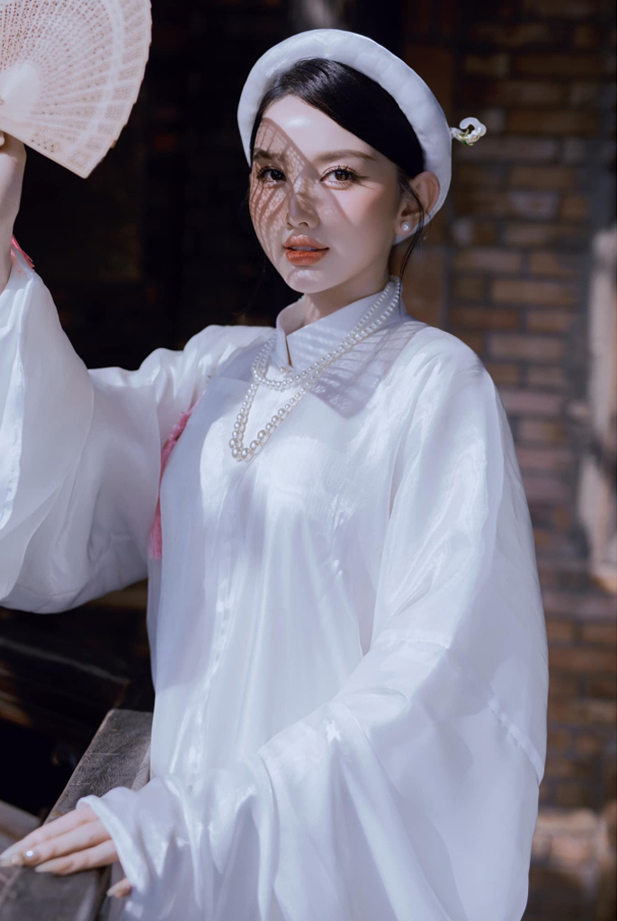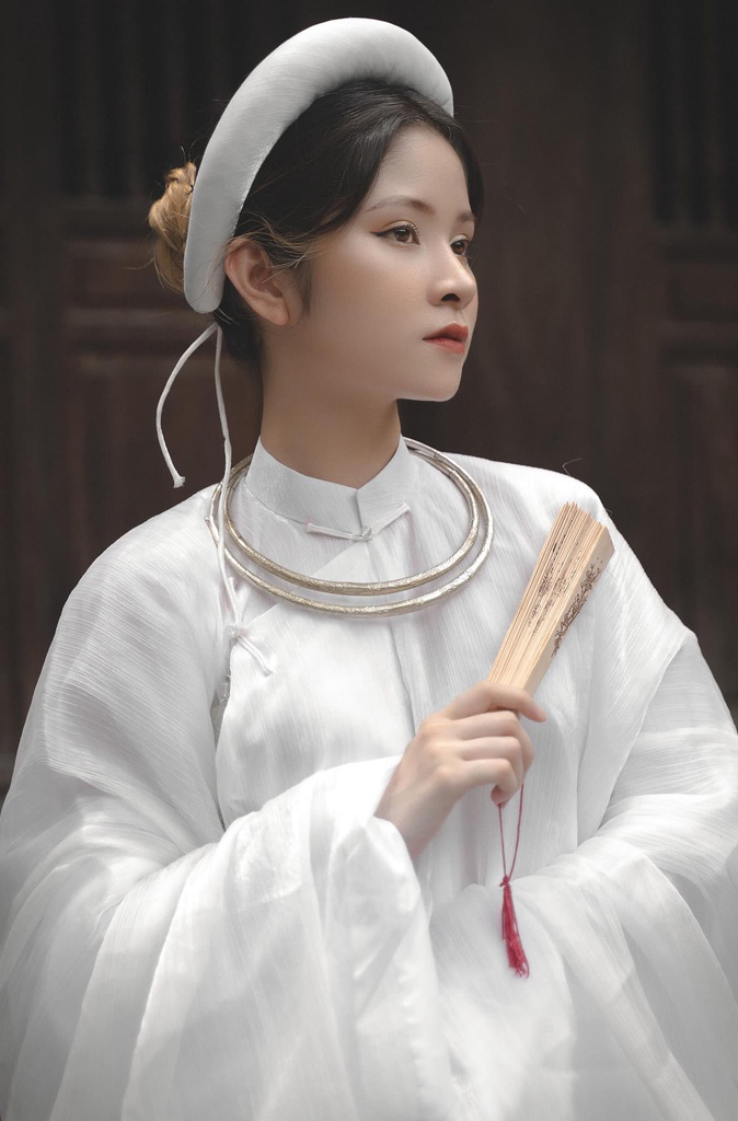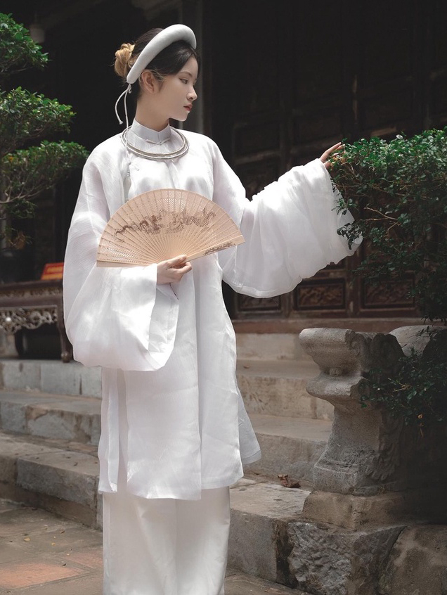 Áo Ngũ Thân Trắng Tơ Kính - Việt Phục Nguyễn Triều