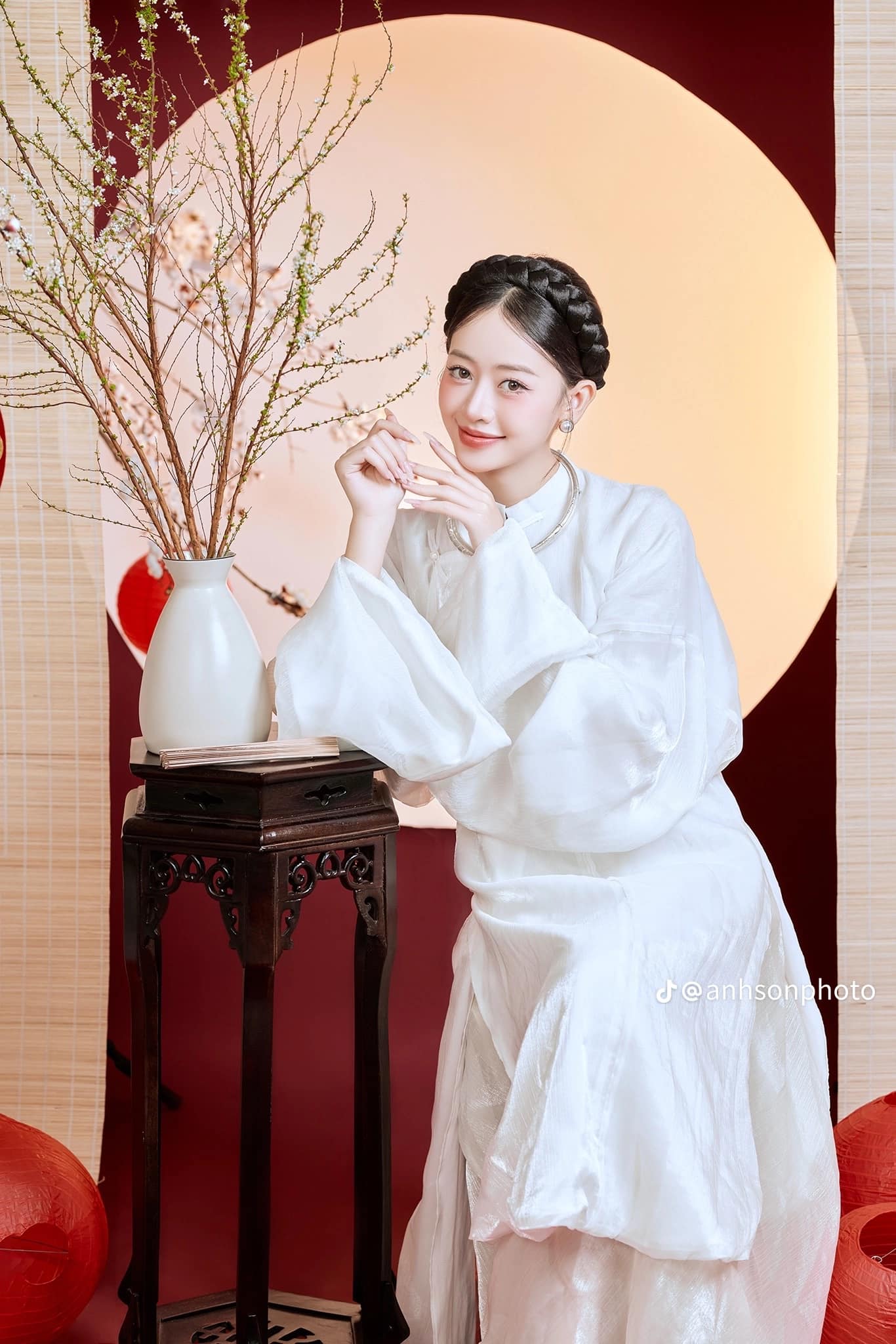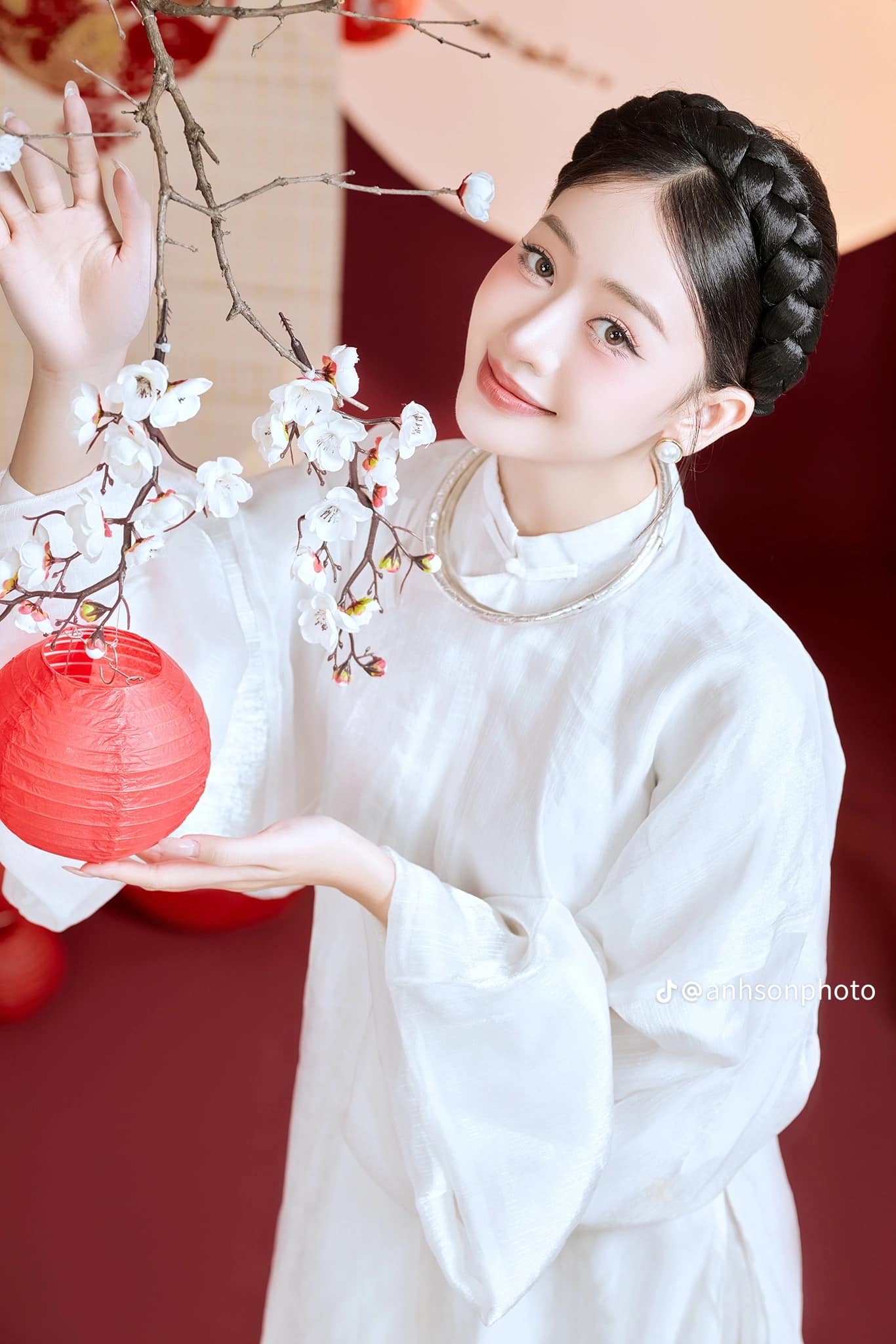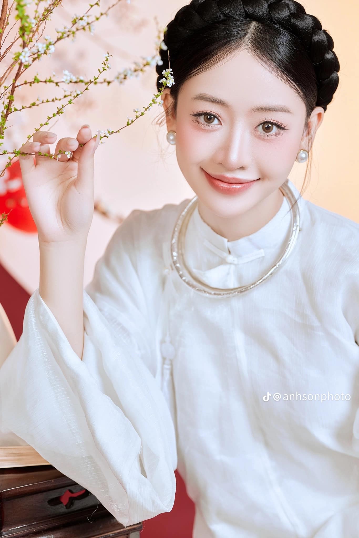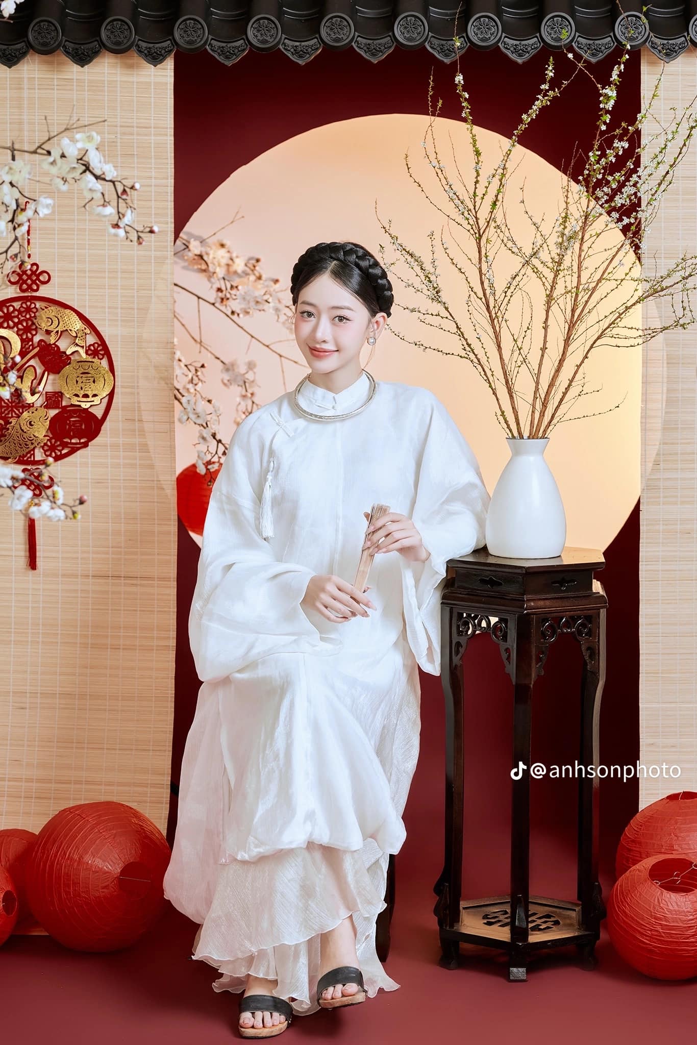 Áo Ngũ Thân Trắng Tơ Kính - Việt Phục Nguyễn Triều