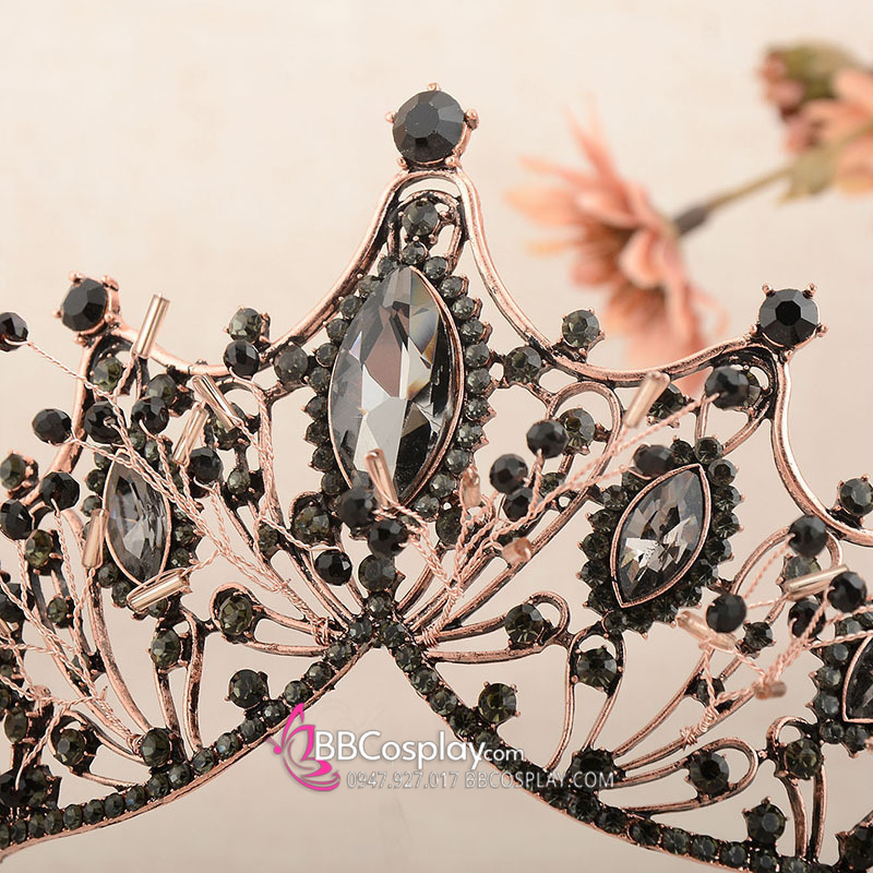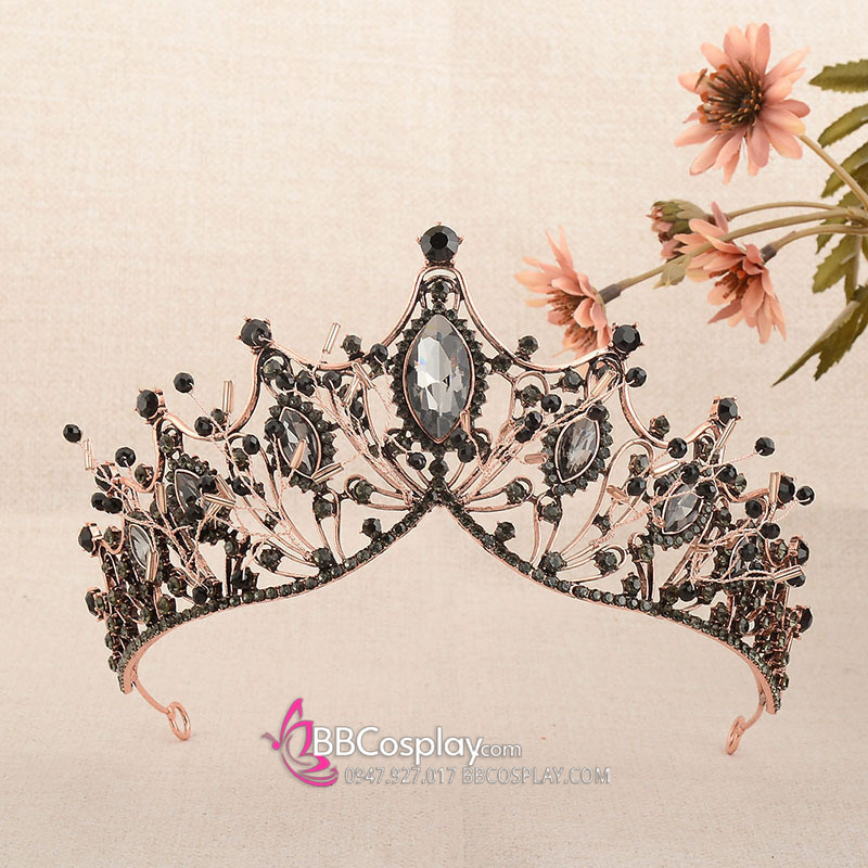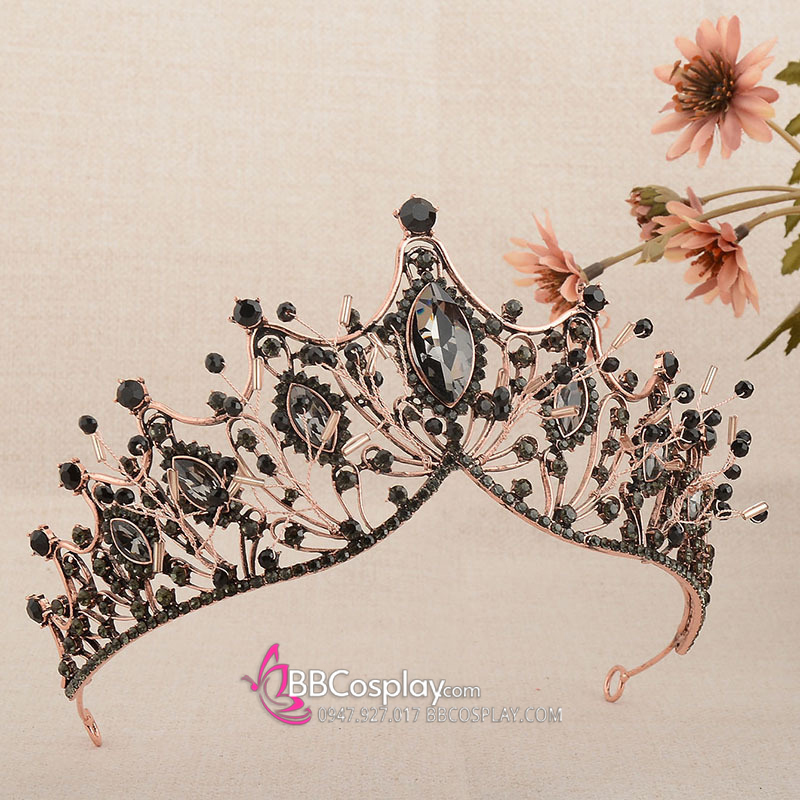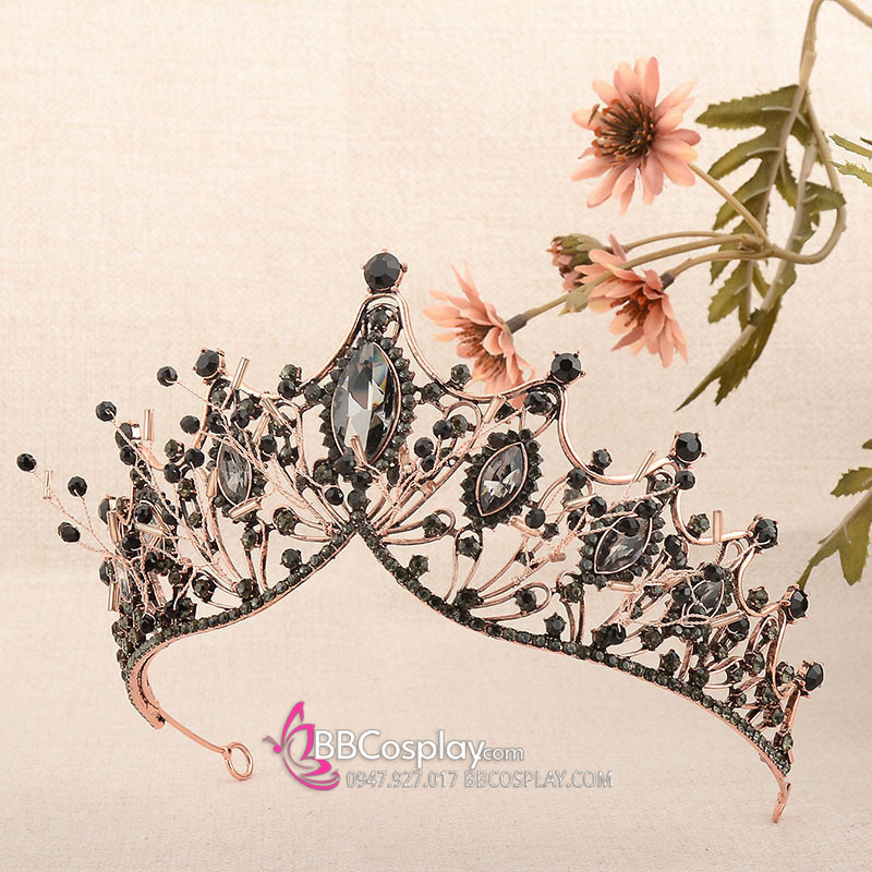 Vương Miện Cài Tóc Đính Đá Đen Quyền Lực