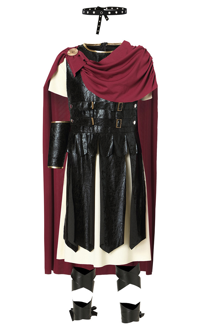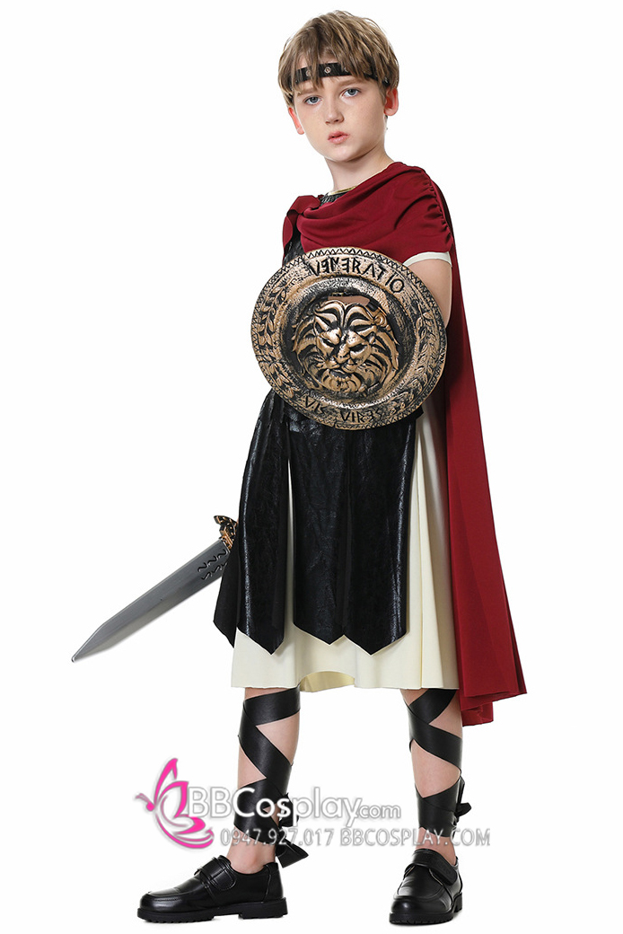 Thành phần: Áo kèm choàng + 1 băng tay + 1 băng trán + 1 cặp băng chân + 1 kiếm + 1 khiên