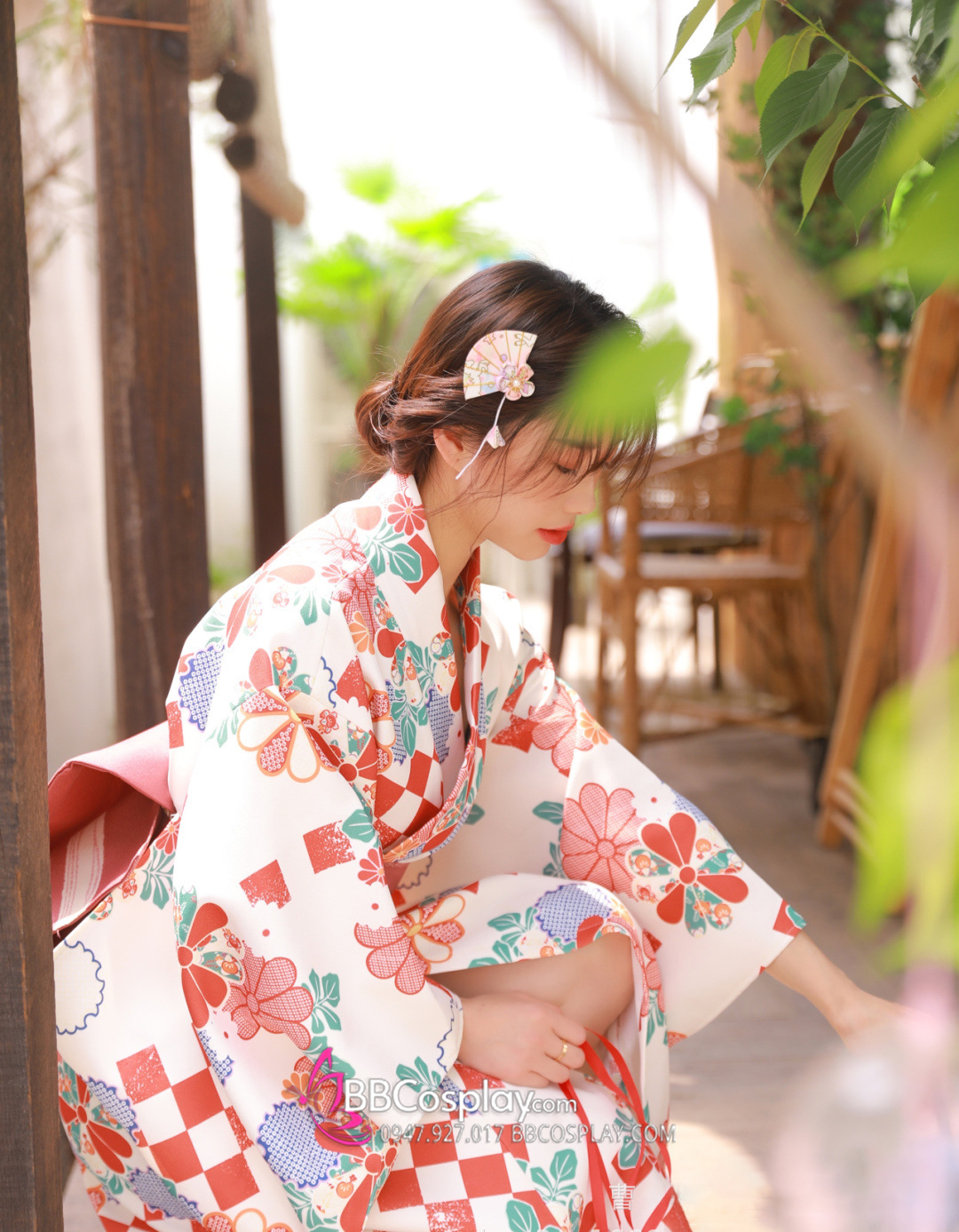 áo + obi (mẫu xịn) + dây đai phụ + 1 kanzashi ( ngẫu nhiên) + cho mượn kèm quạt xếp