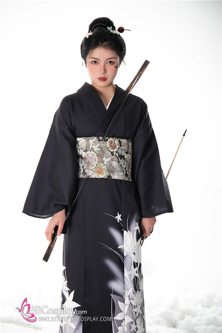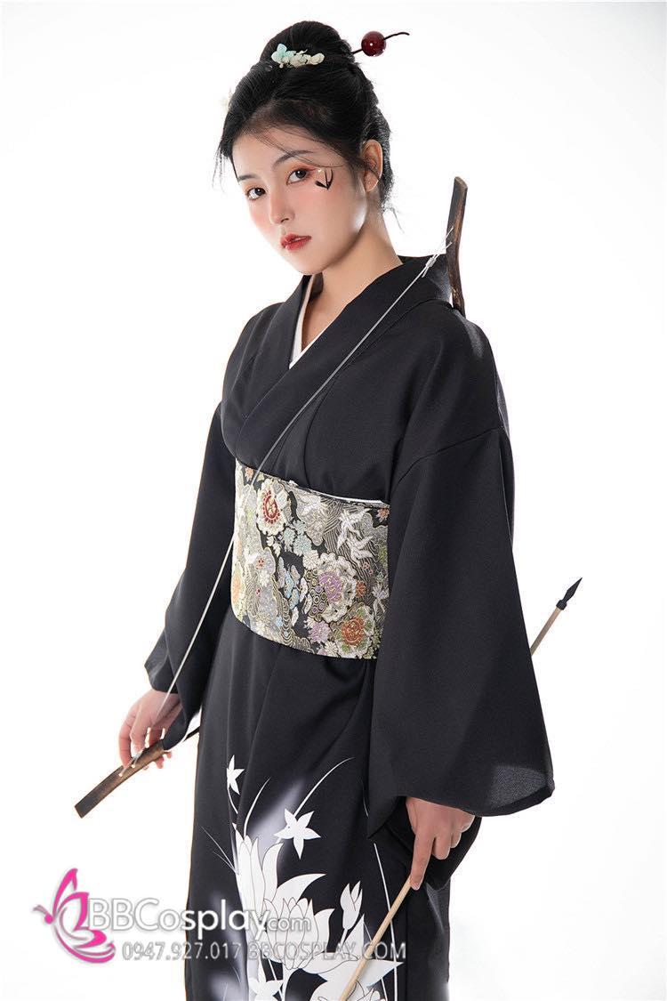 Áo Yukata Nữ Cung Thủ Archer Đen Hoa Trắng