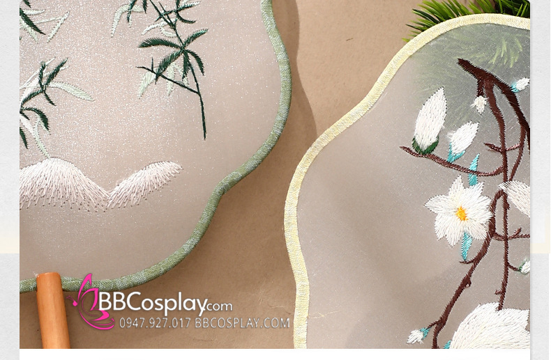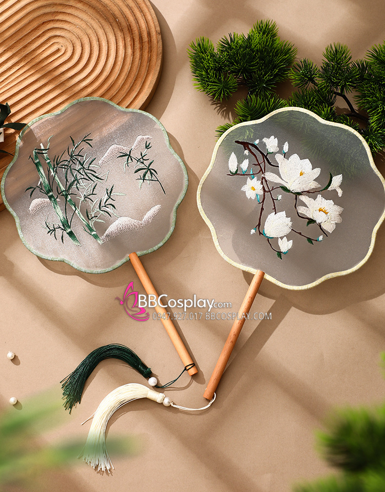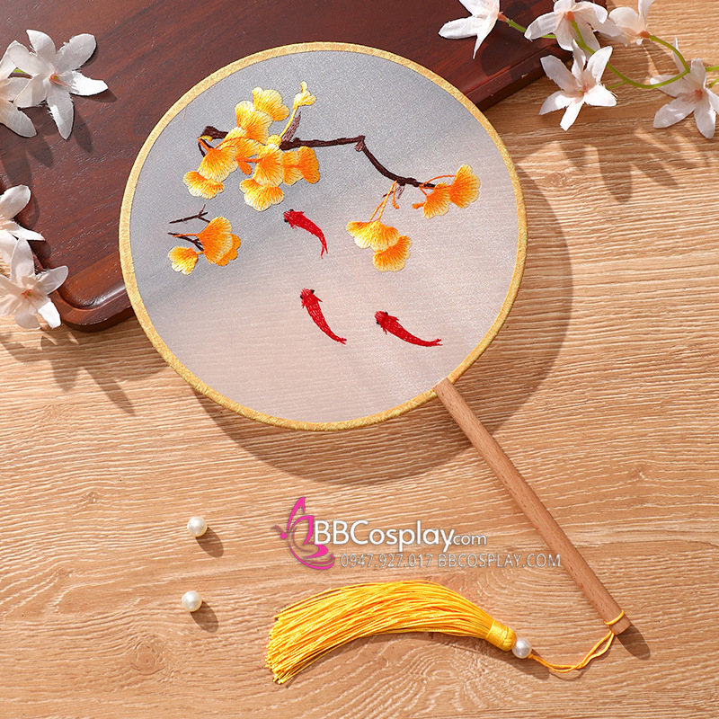 Quạt Tròn Thêu Hoa Ngân Hạnh