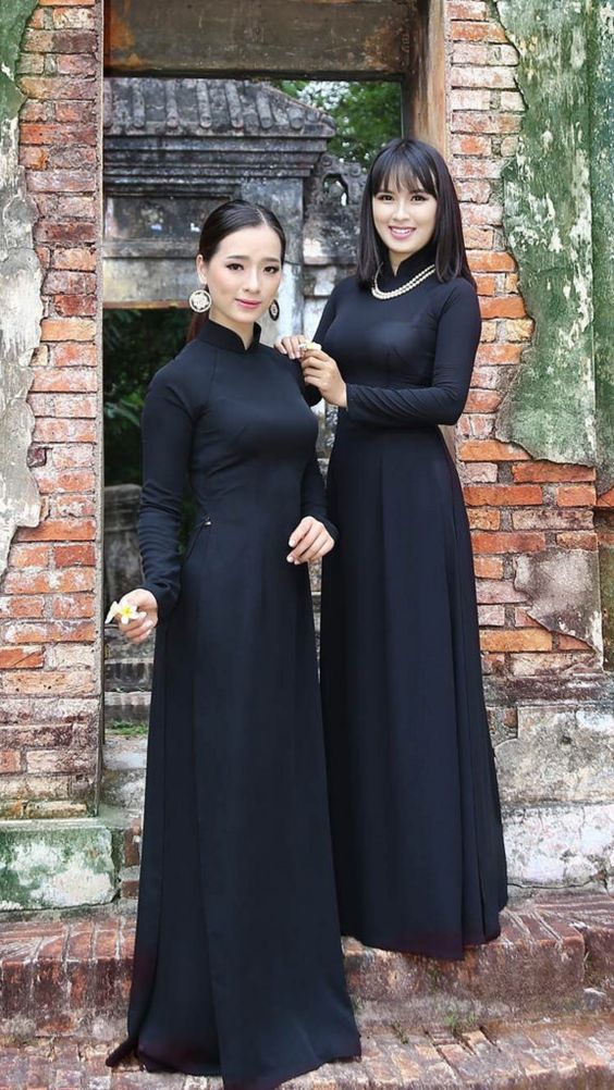Áo Dài Truyền Thống Đen Chất Lụa Mỹ Mềm Mịn 4 Tà