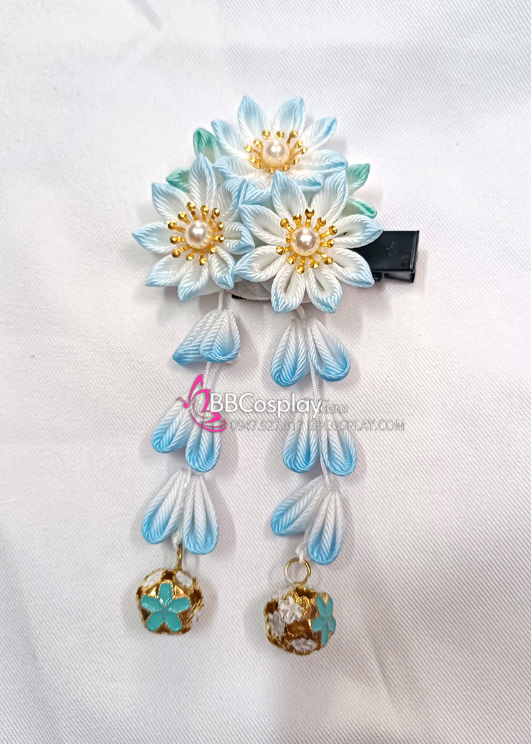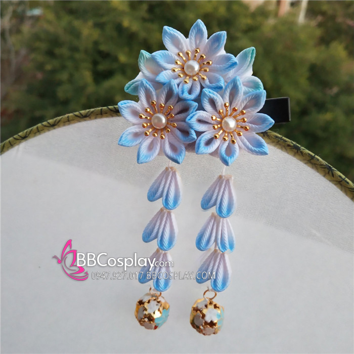 Kanzashi Nhật Bản 3 Hoa Xanh Dương - Loại 2 Dây Hoa