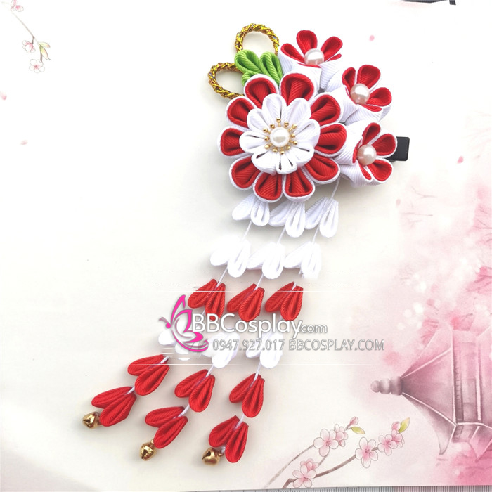 Kanzashi Nhật Bản Đỏ Trắng Cơ Bản - Lớn