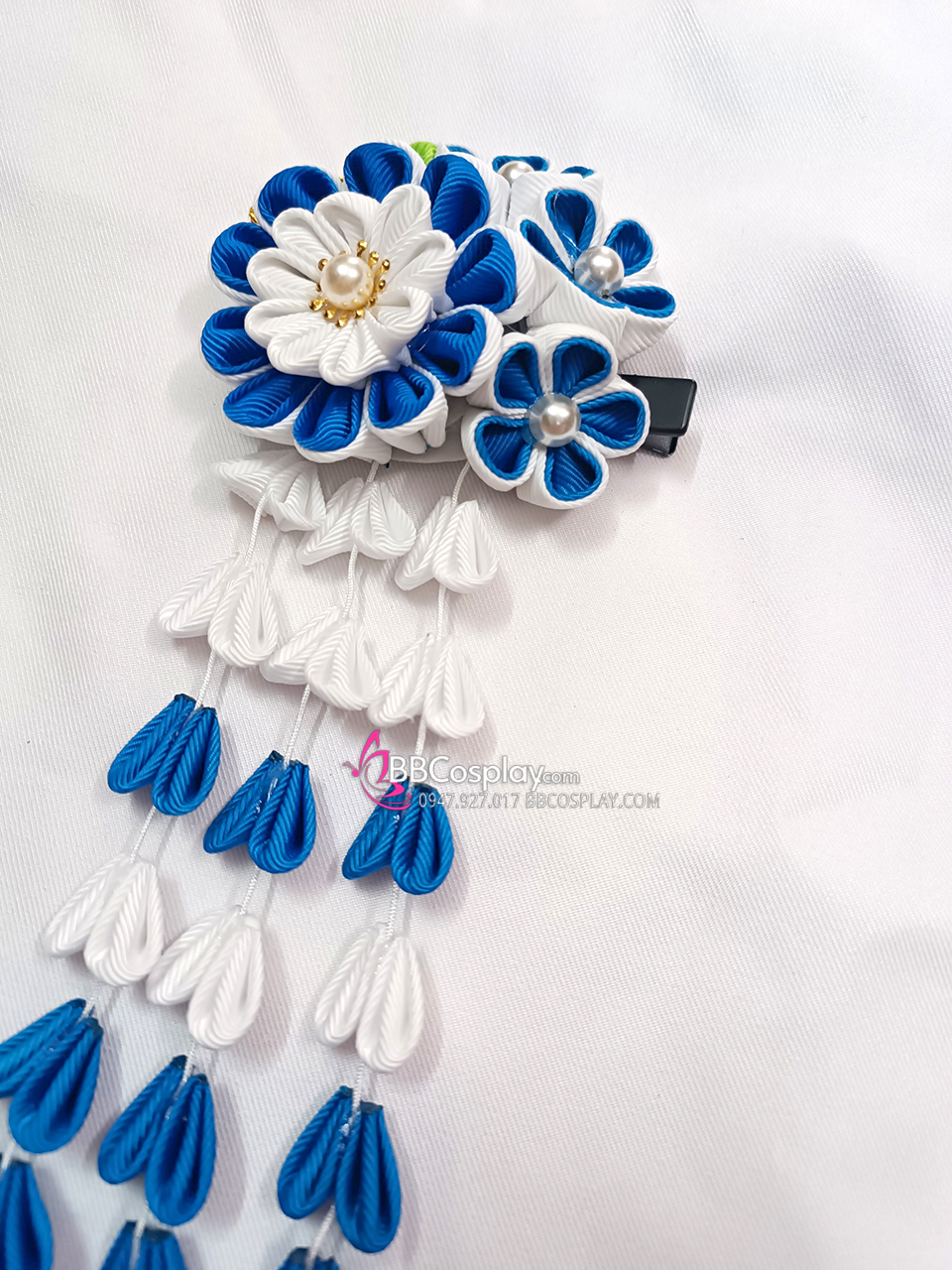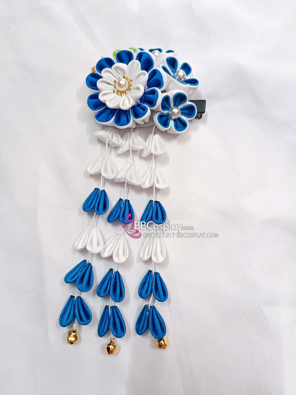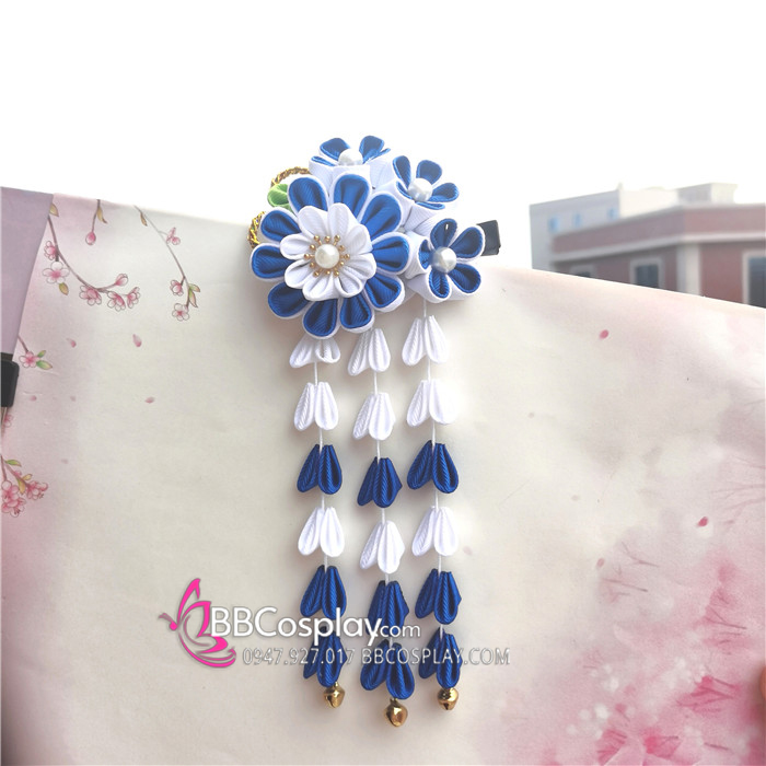 Kanzashi Nhật Bản Xanh Dương Trắng - Lớn