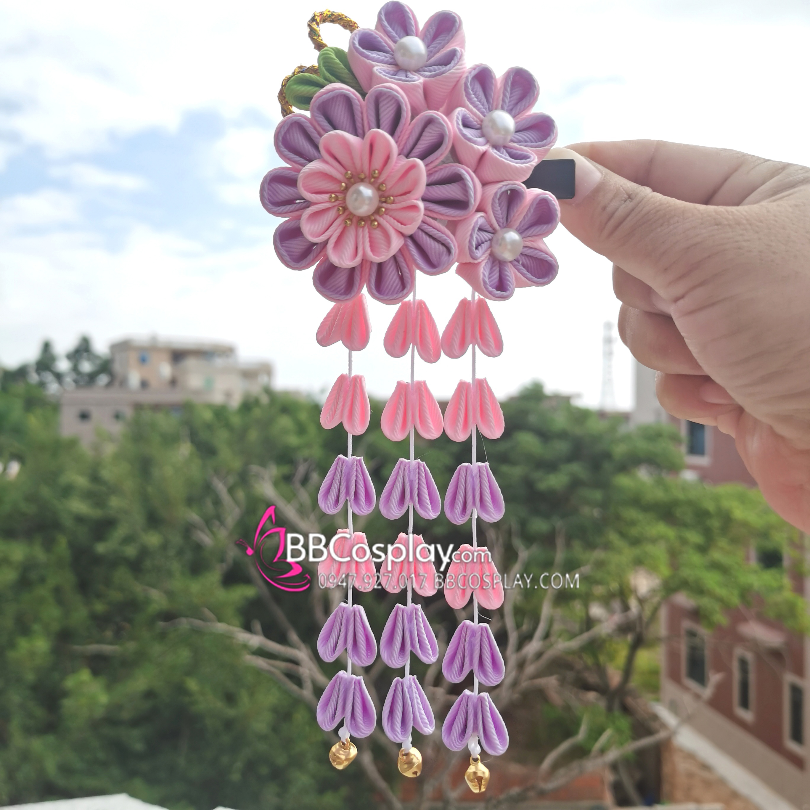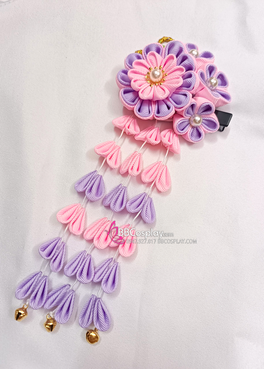 Kanzashi Nhật Bản Tím Hồng Pastel - Lớn