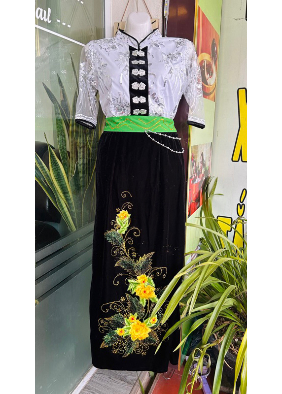 Đồ Dân Tộc Thái Áo Trắng Ren Tay Lỡ Váy Đen Nhung