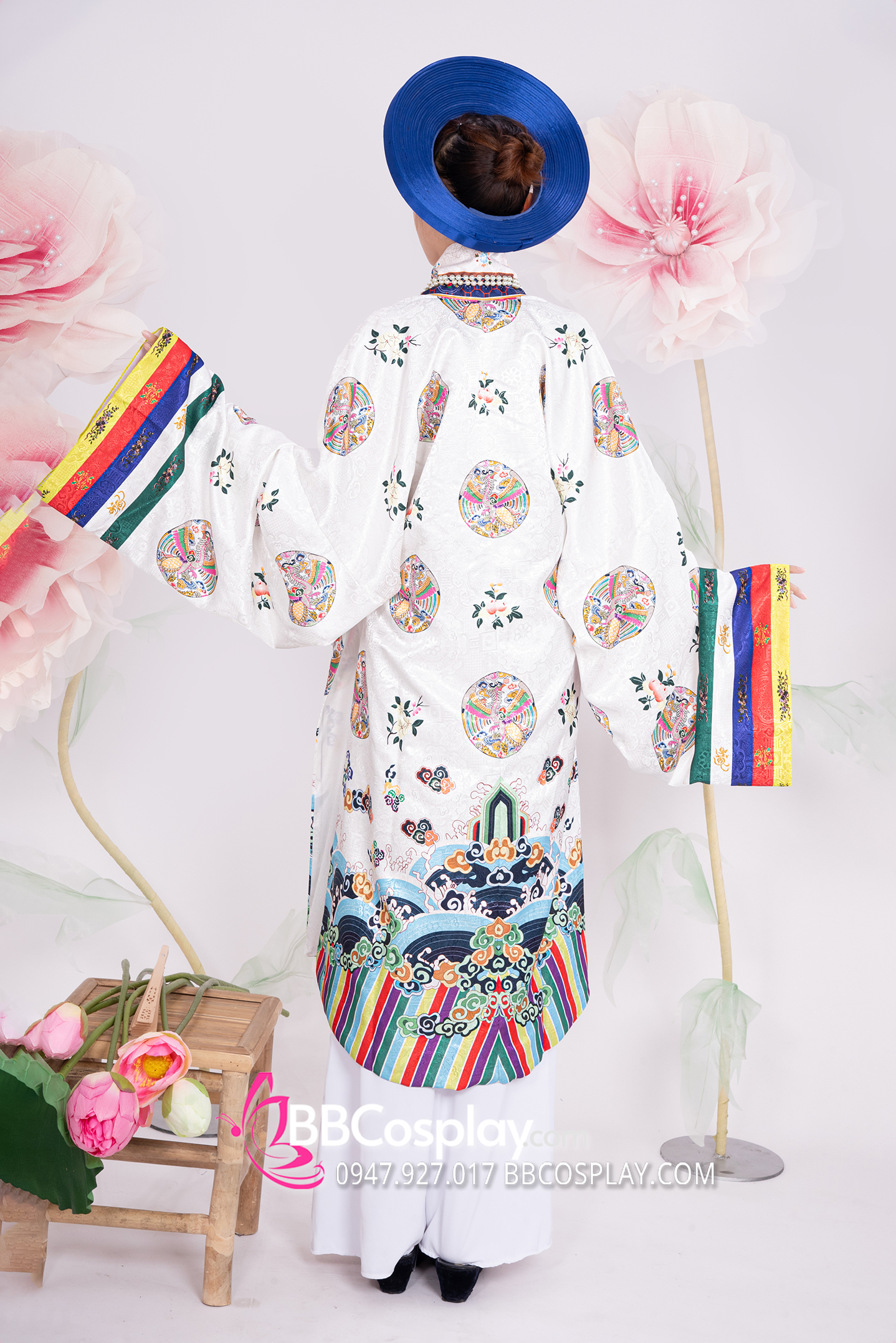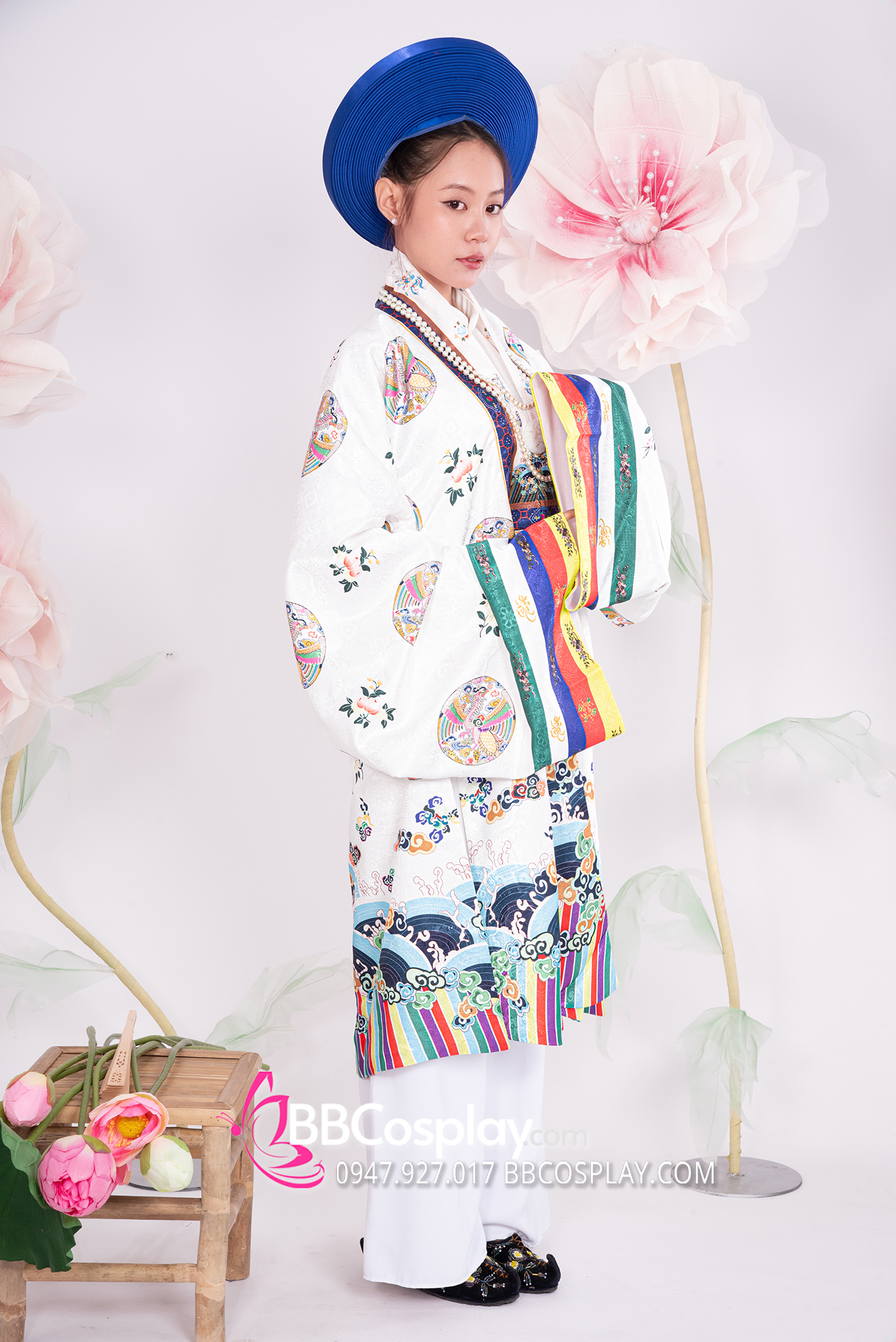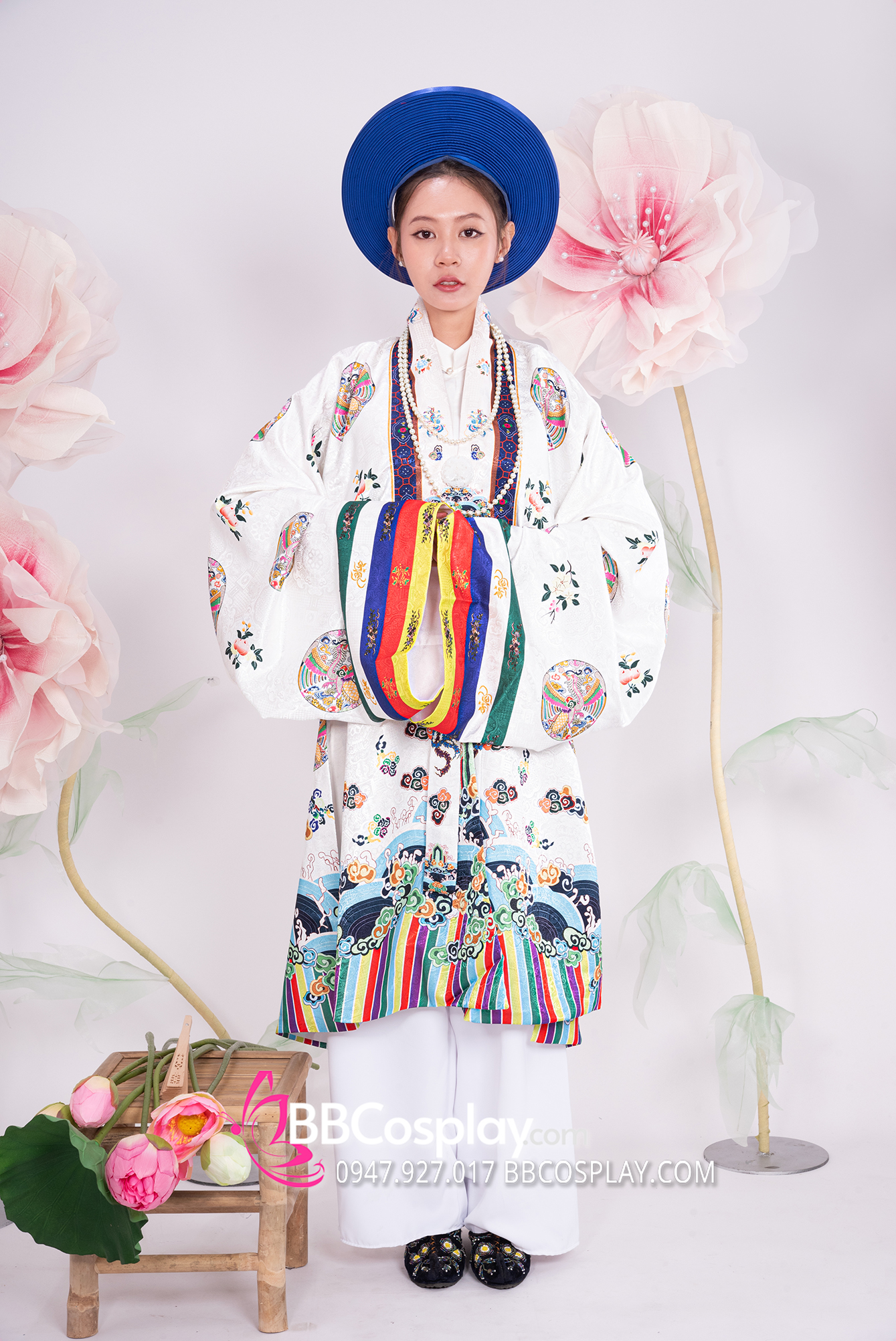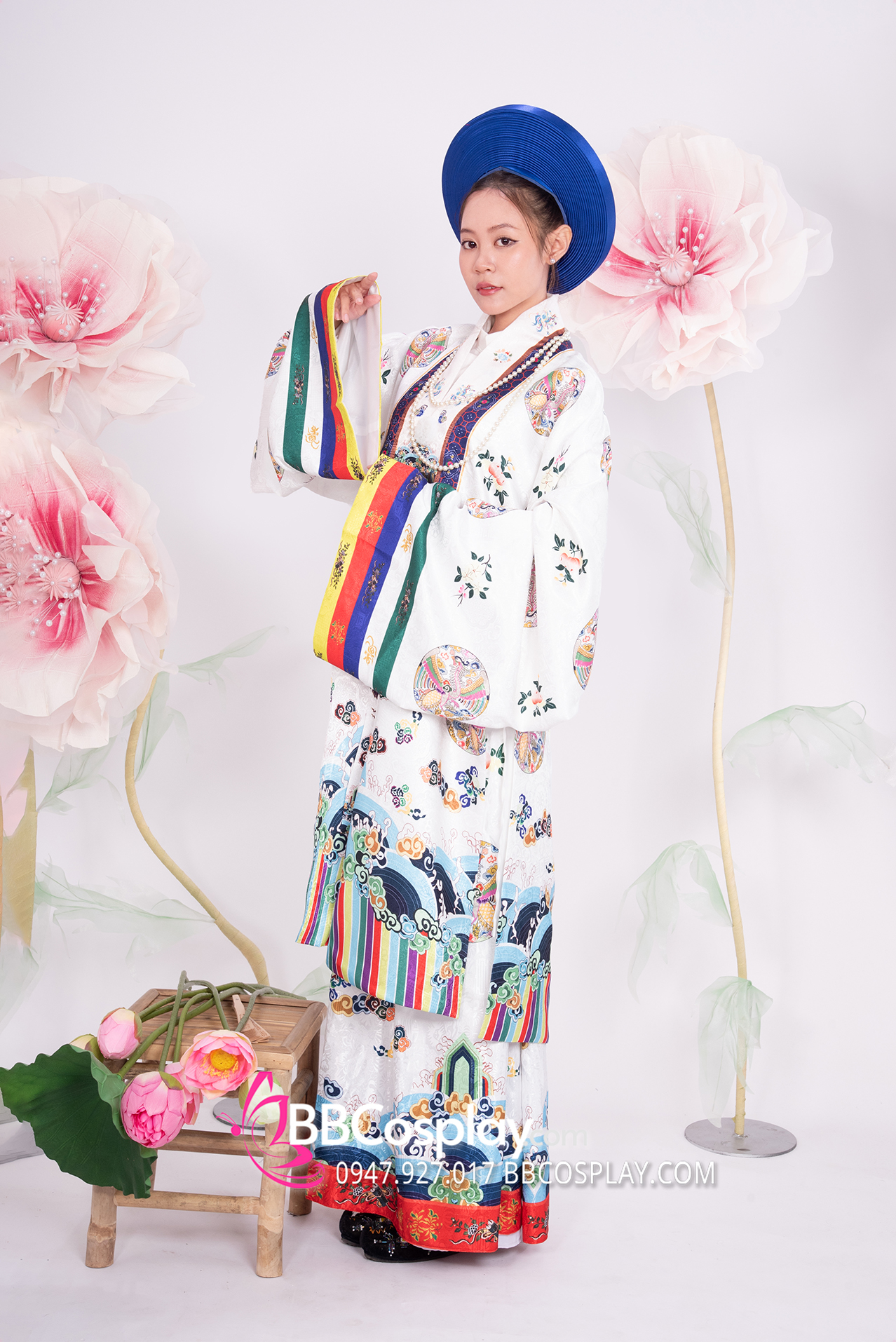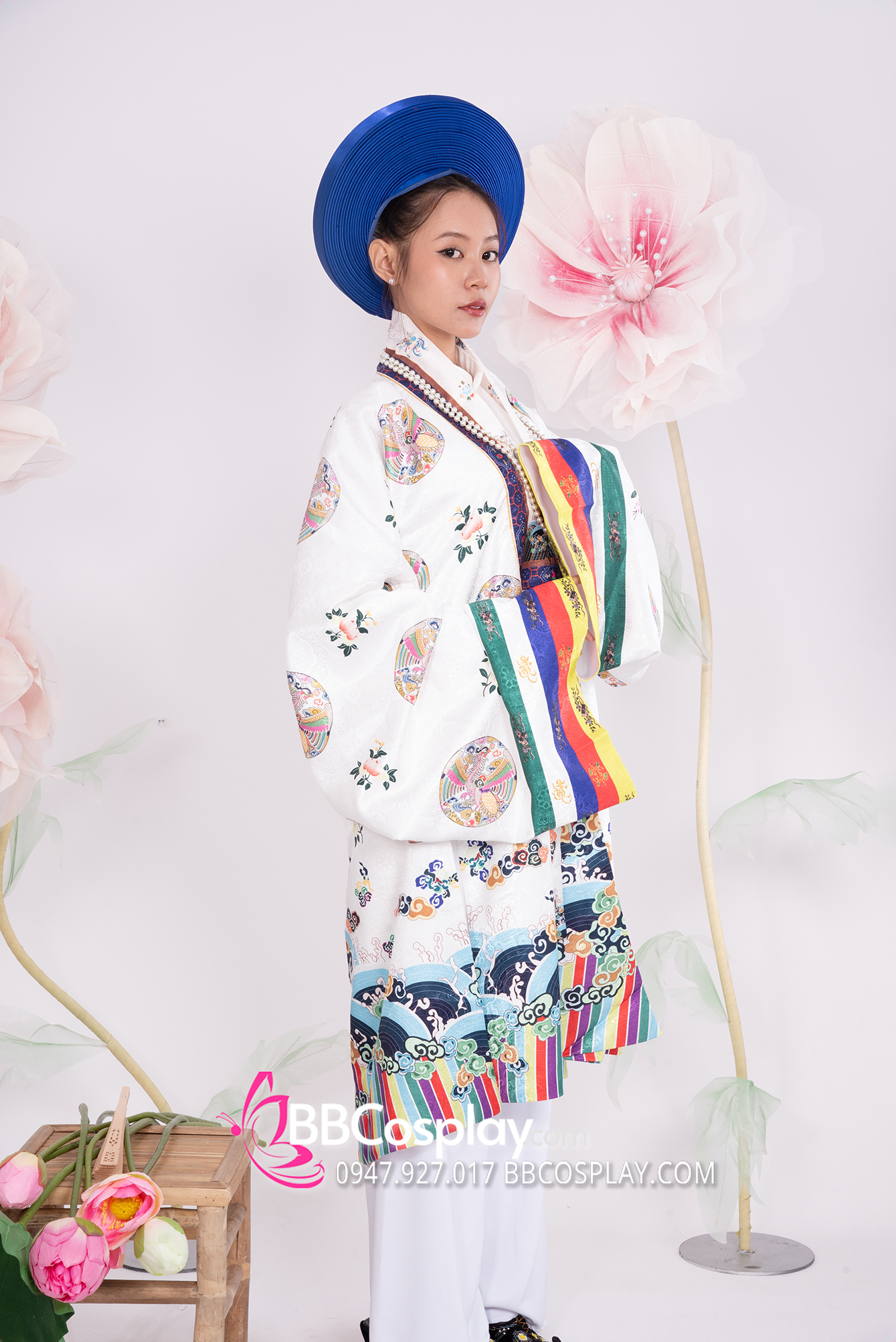 Trang Phục Cặp Đôi Việt Phục Nhật Bình Trắng - Mãng Lan Xanh Dương