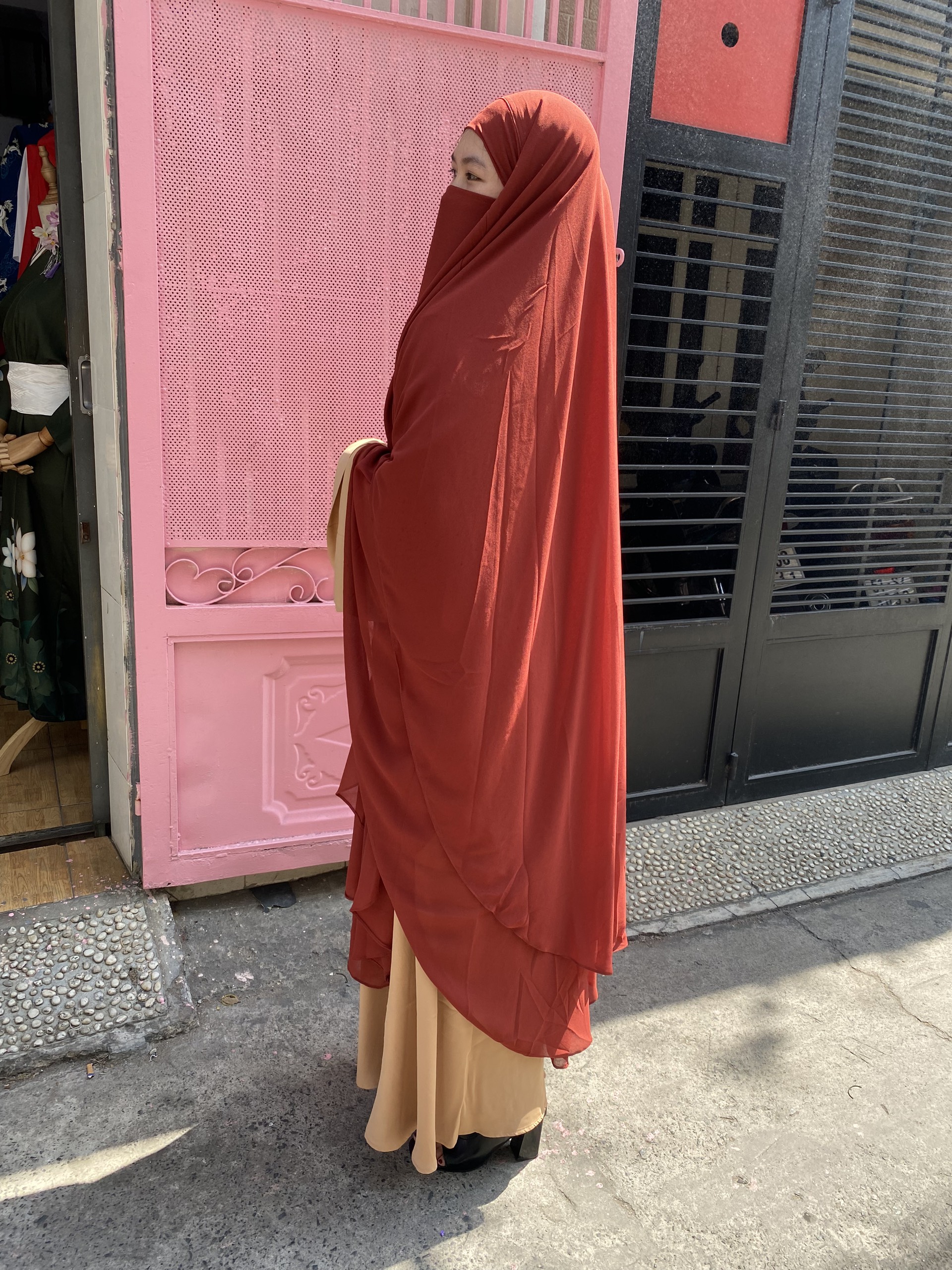 Khăn Trùm Khimar Màu Đỏ Nâu
