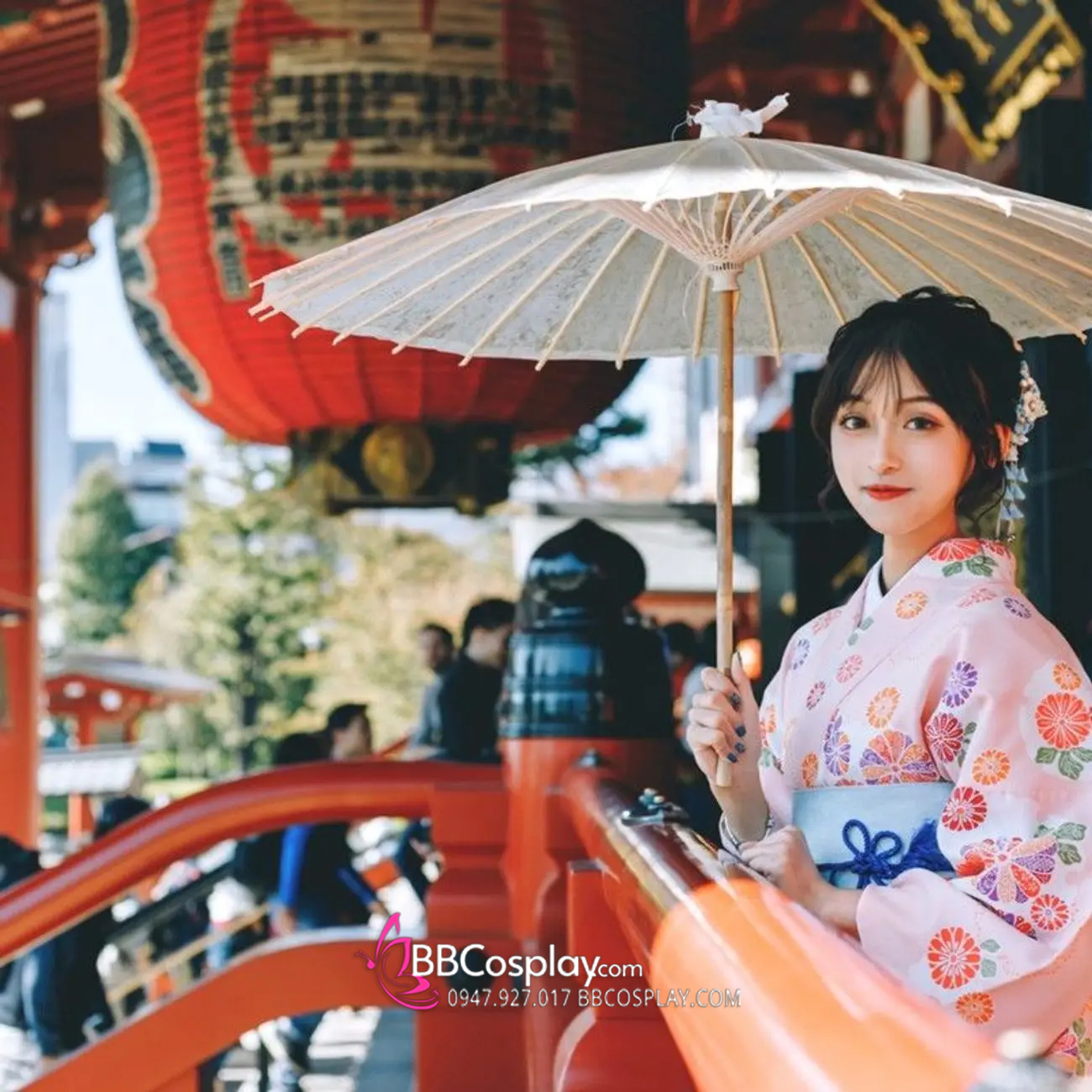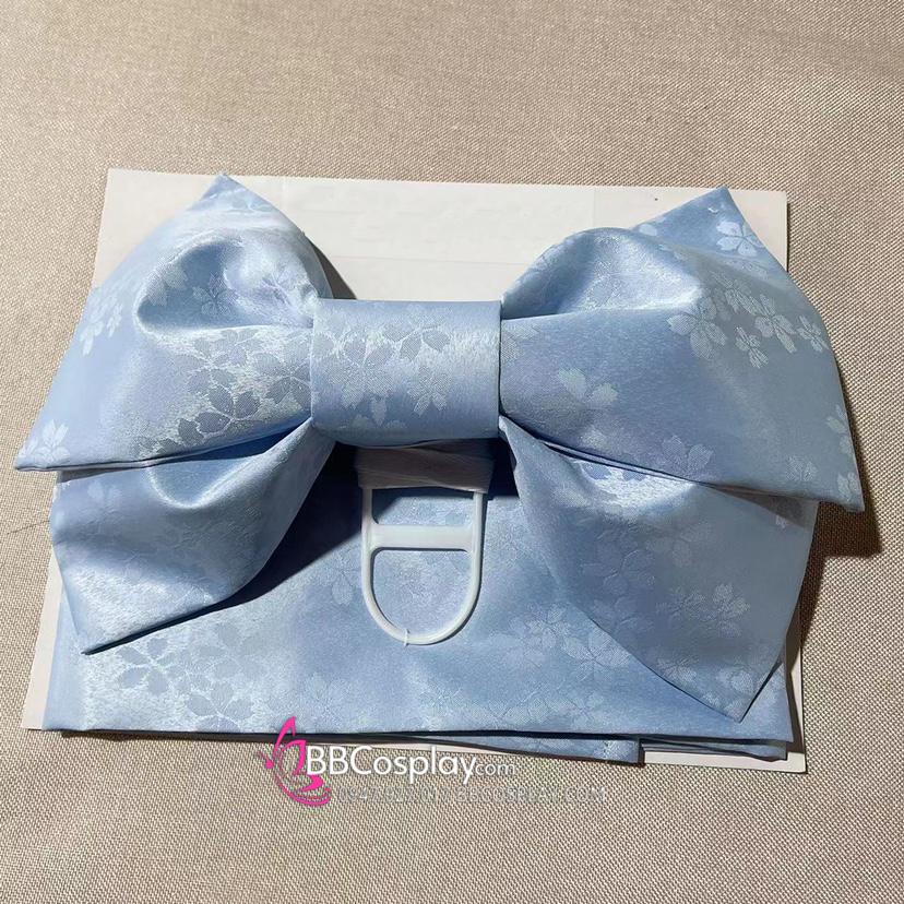 Đai Lưng Kimono Nhật Nơ Xanh Dương Nhạt Hoạ Tiết Hoa Anh Đào Chìm