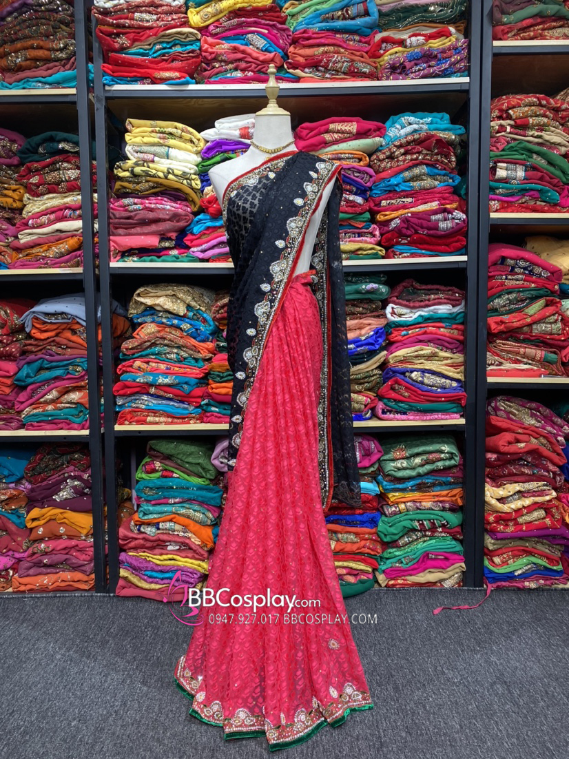 Trang Phục Sari Ấn Độ Đỏ Đen