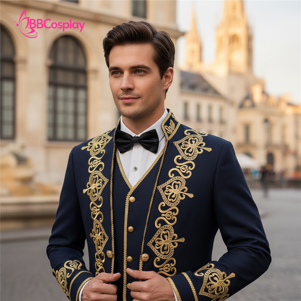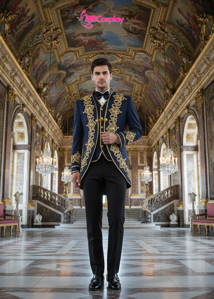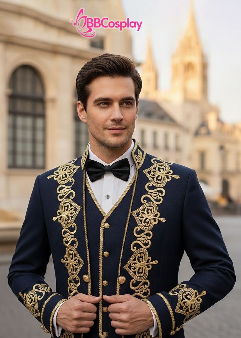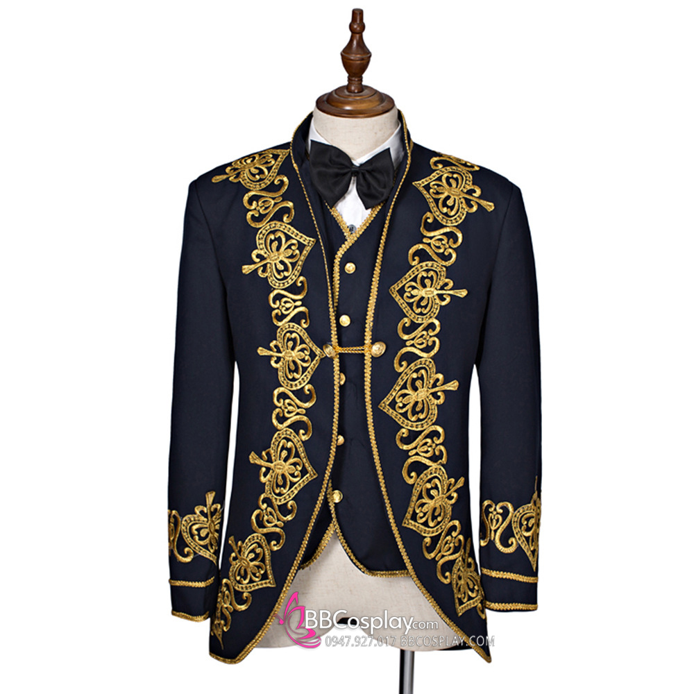 - Thiết kế 3 lớp (3-piece): Sự kết hợp giữa áo khoác ngoài, gilet ôm sát và nơ bướm (bow tie) tạo nên một tổng thể trang trọng tuyệt đối.