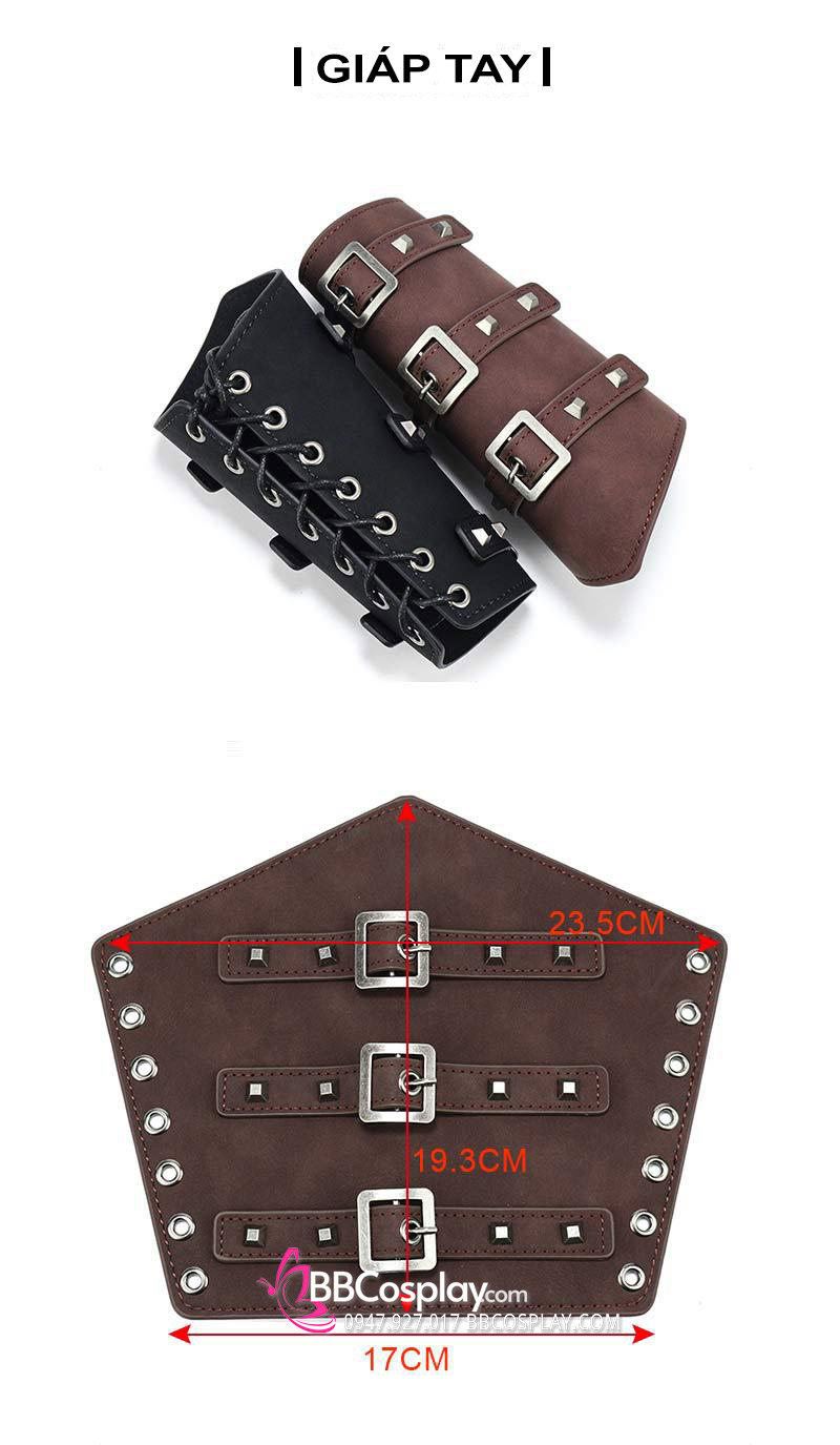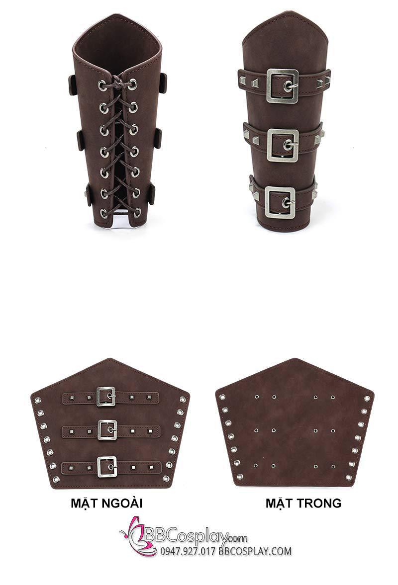 Giáp Tay Chiến Binh Loại Trơn Chất Liệu PU Loại 3 Khoá Cài - Màu Nâu