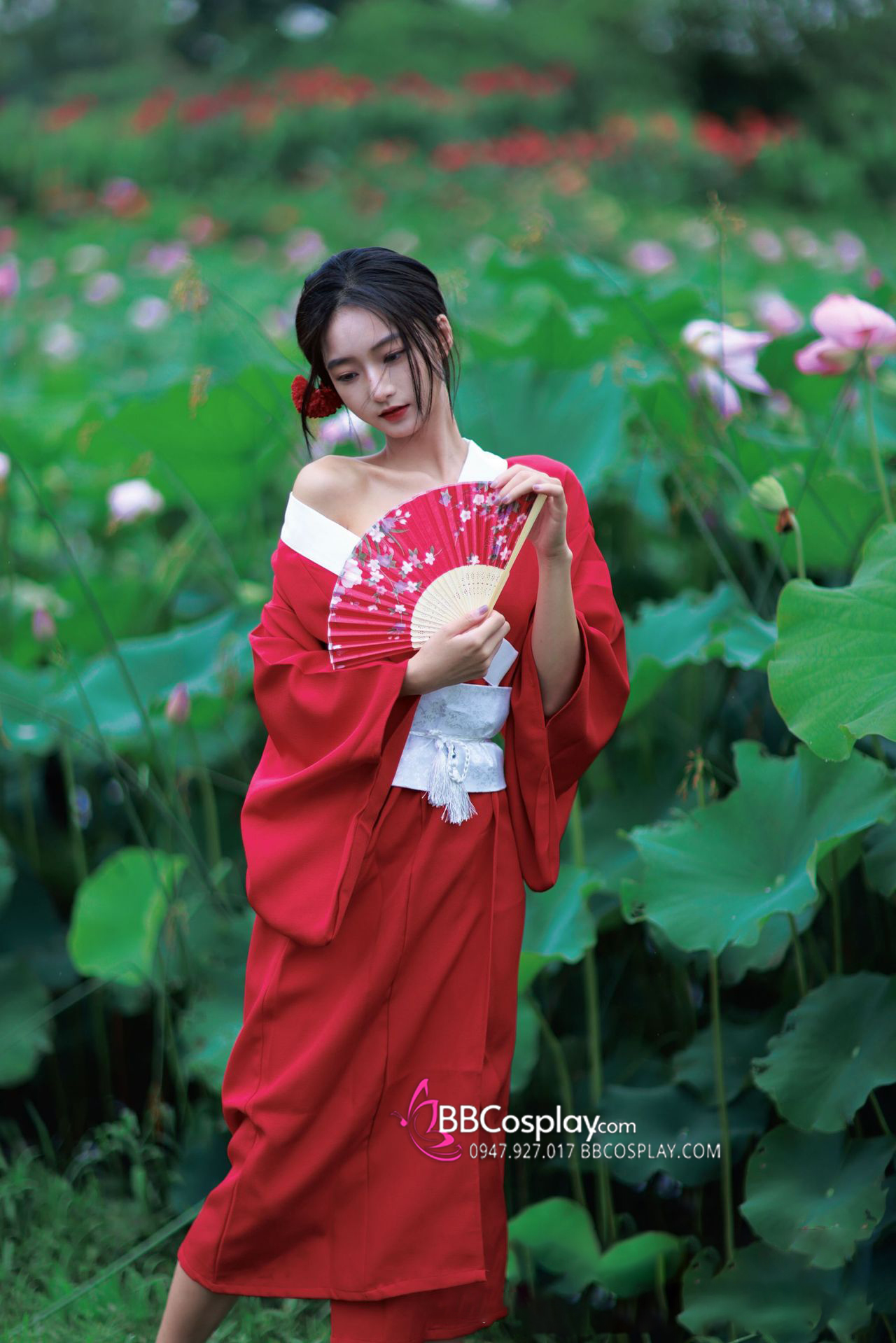 áo + obi (mẫu xịn) + dây đai phụ + 1 kanzashi ( ngẫu nhiên) + cho mượn kèm quạt xếp