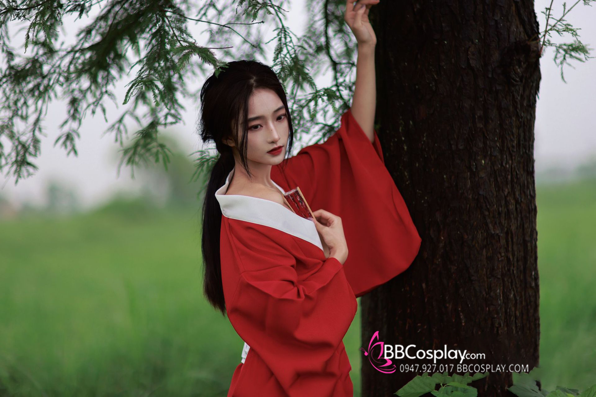 áo + obi (mẫu giá rẻ) + dây đai phụ + cho mượn kèm quạt xếp