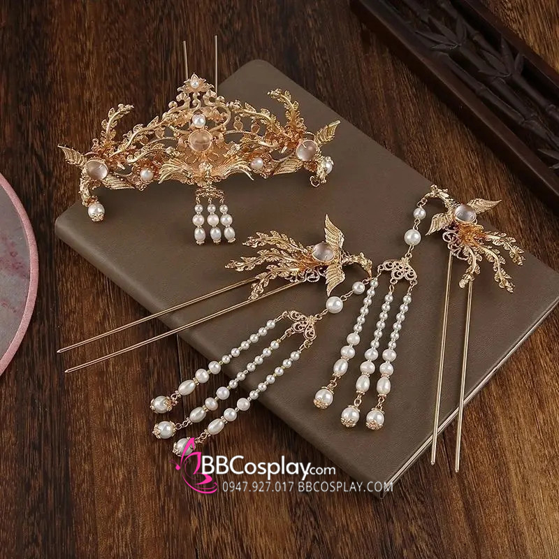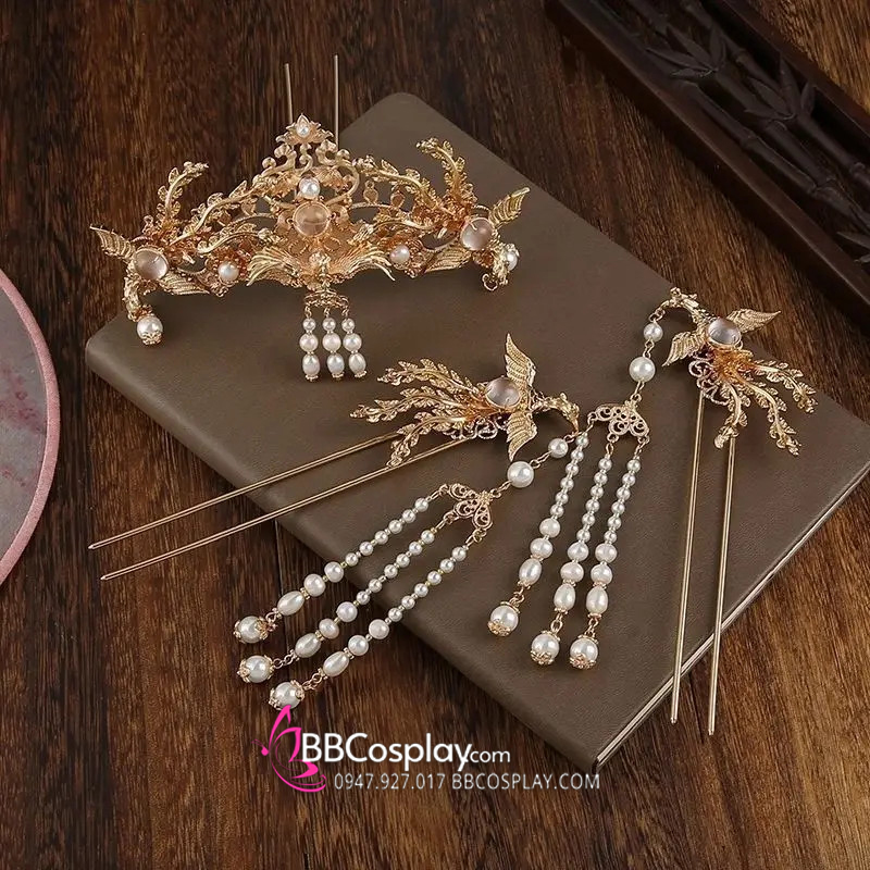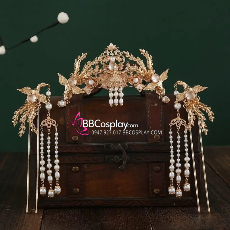 Bộ 3 Món Trâm Cài Cánh Phượng Full Vàng