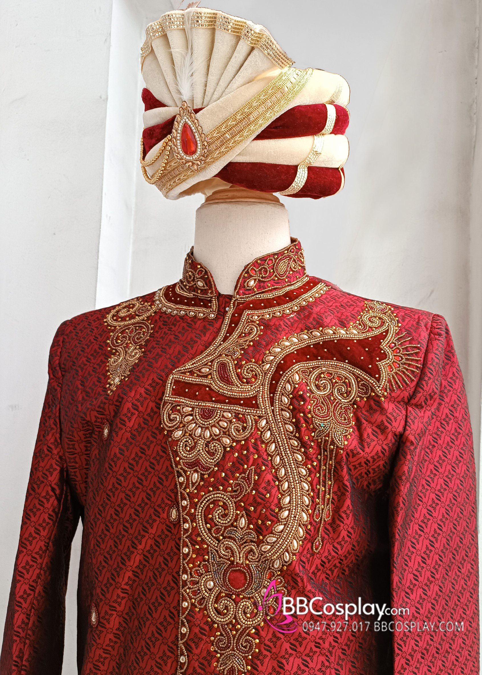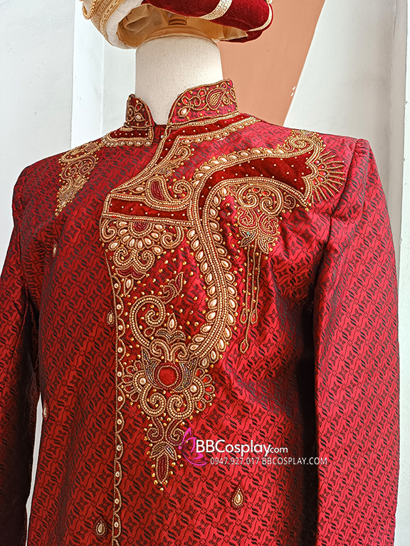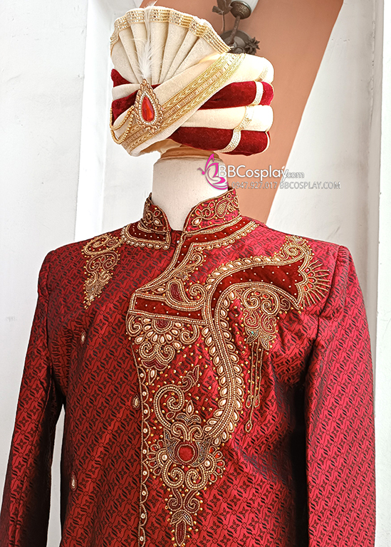 Trang Phục Hoàng Tử Ấn Độ Tone Đỏ Hoàng Gia Kèm Nón
