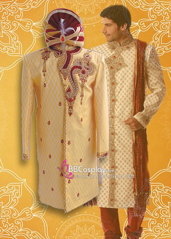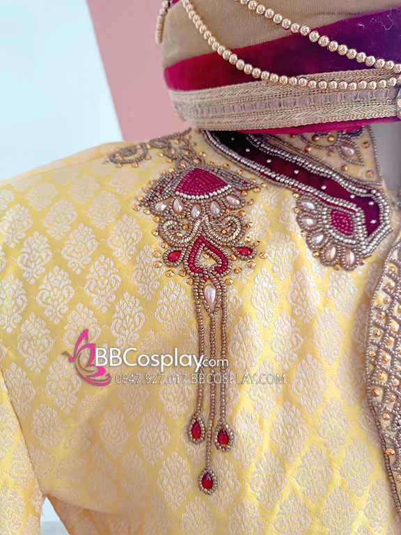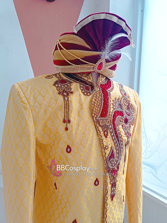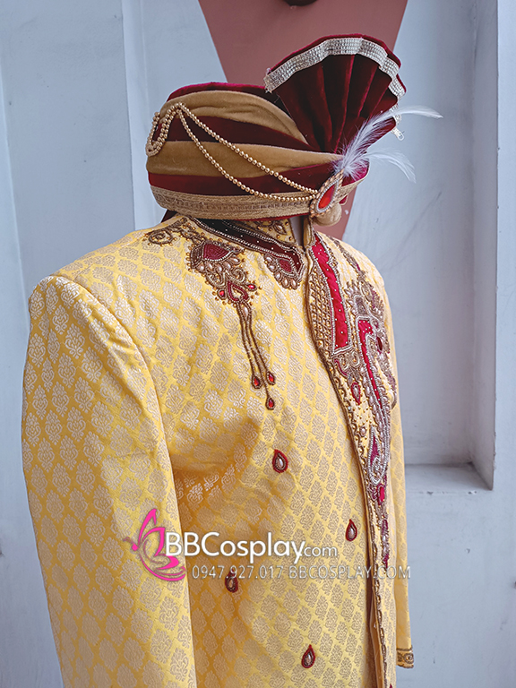 Trang Phục Hoàng Tử Ấn Độ Vàng Cà Ri Kèm Nón