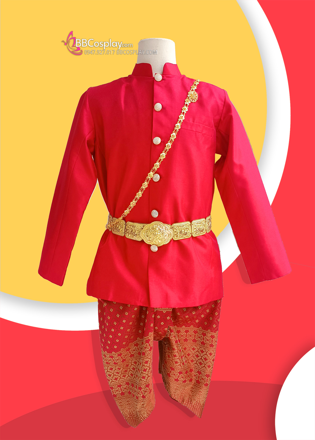 Trang Phục Nam Thái Tone Đỏ Tươi - Quần Gấm Đỏ