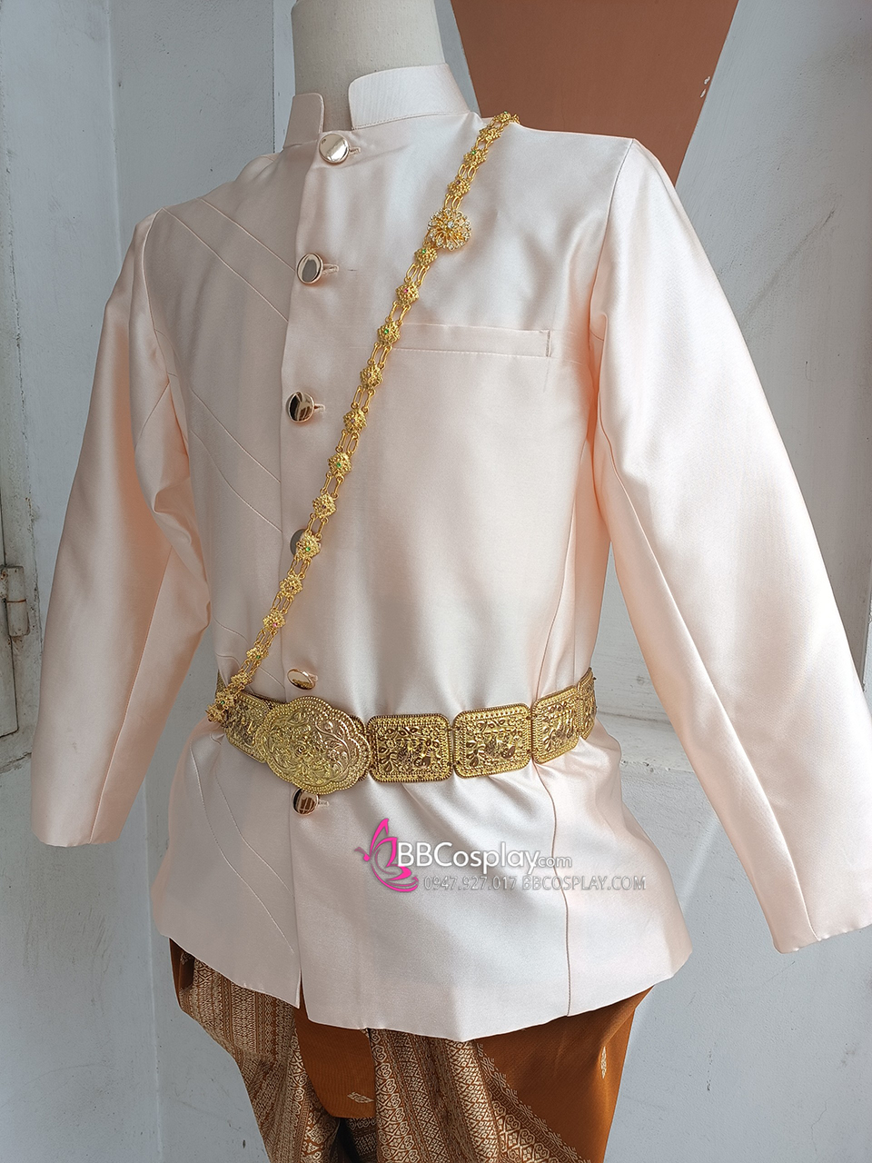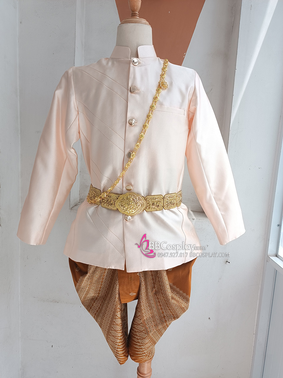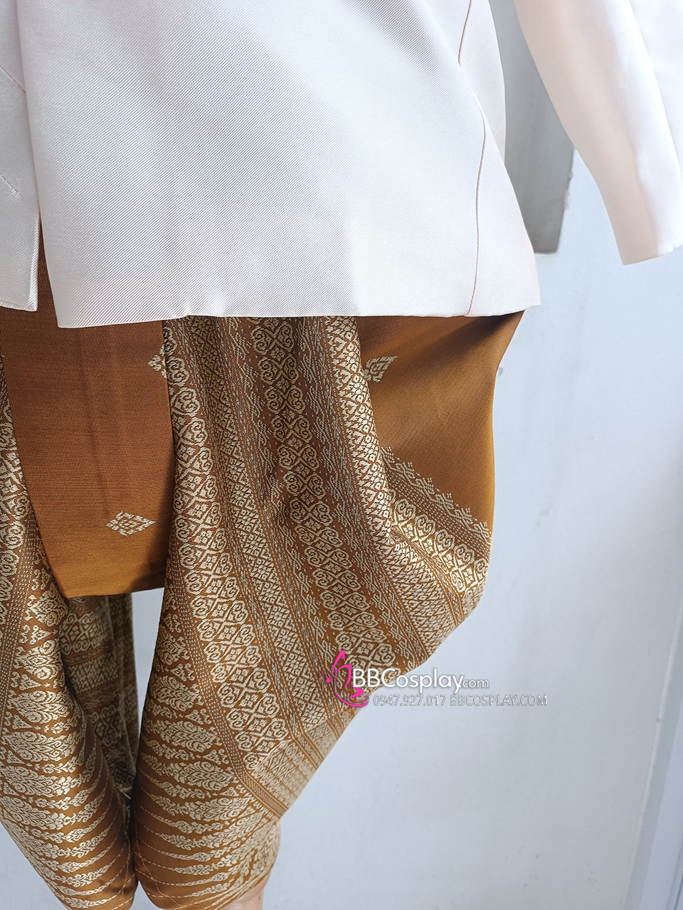 Trang Phục Nam Thái Áo Kem Quần Nâu Gấm