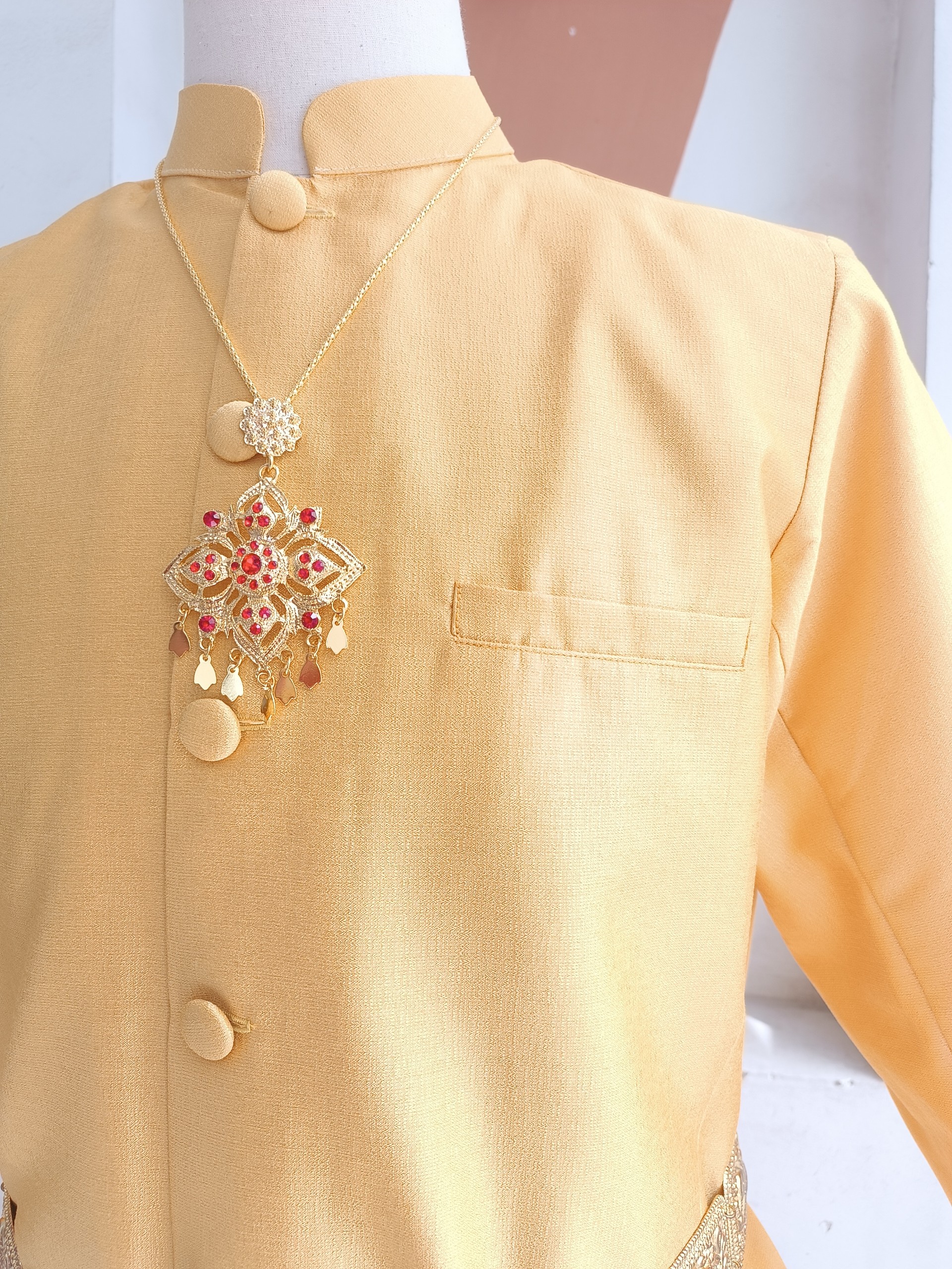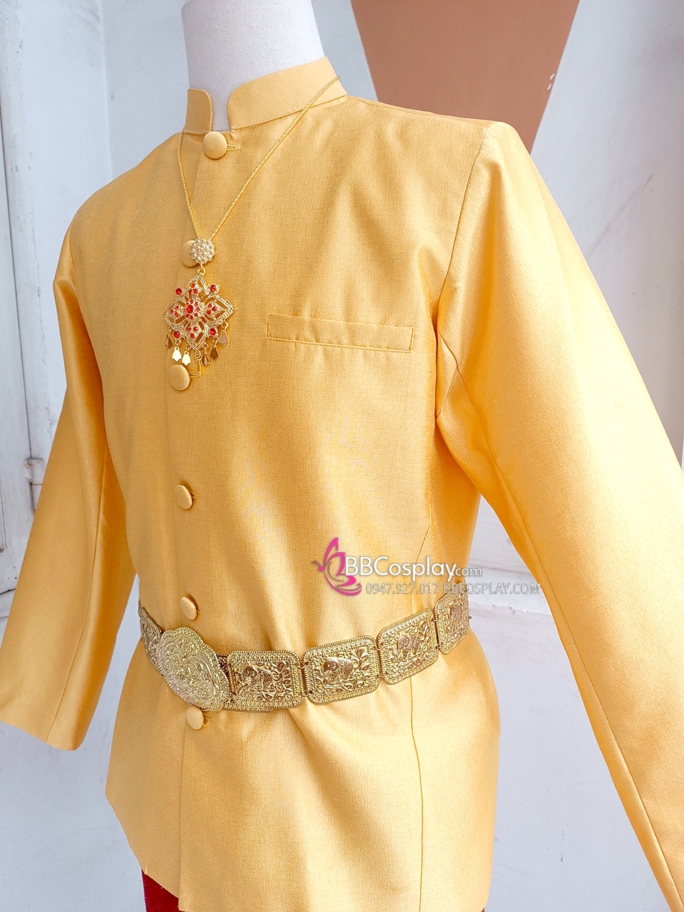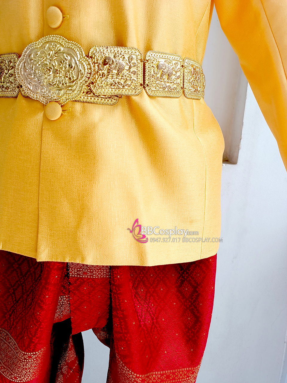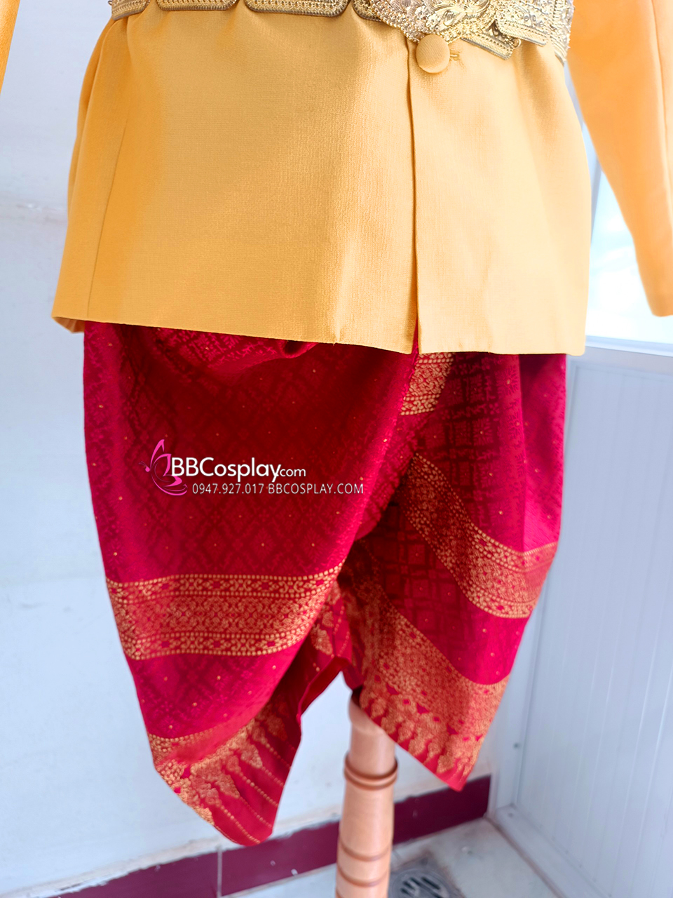 Trang Phục Nam Thái Áo Vàng Tươi Quần Đỏ Gấm