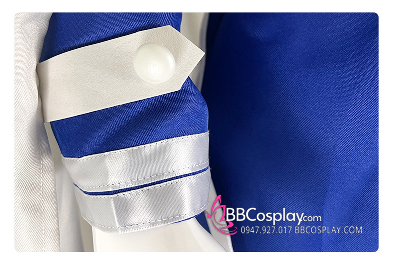 áo xanh + choàng + thăt lưng + quần trắng