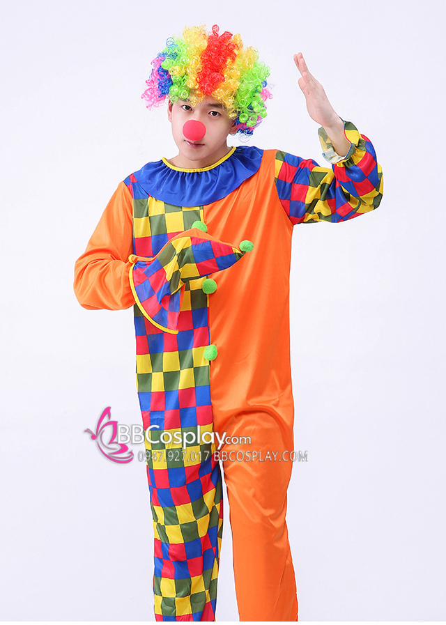 Trang Phục Chú Hề Cam Caro Liền Thân