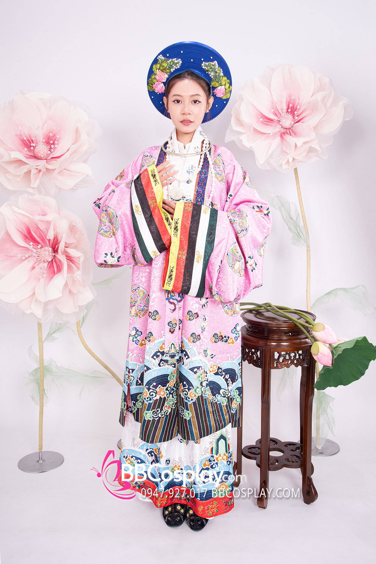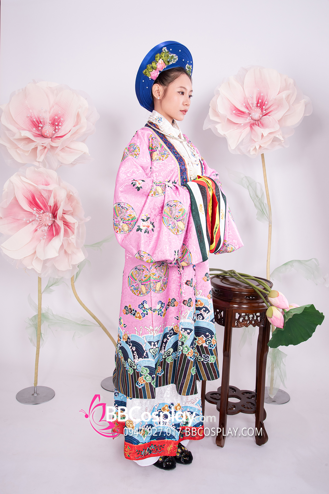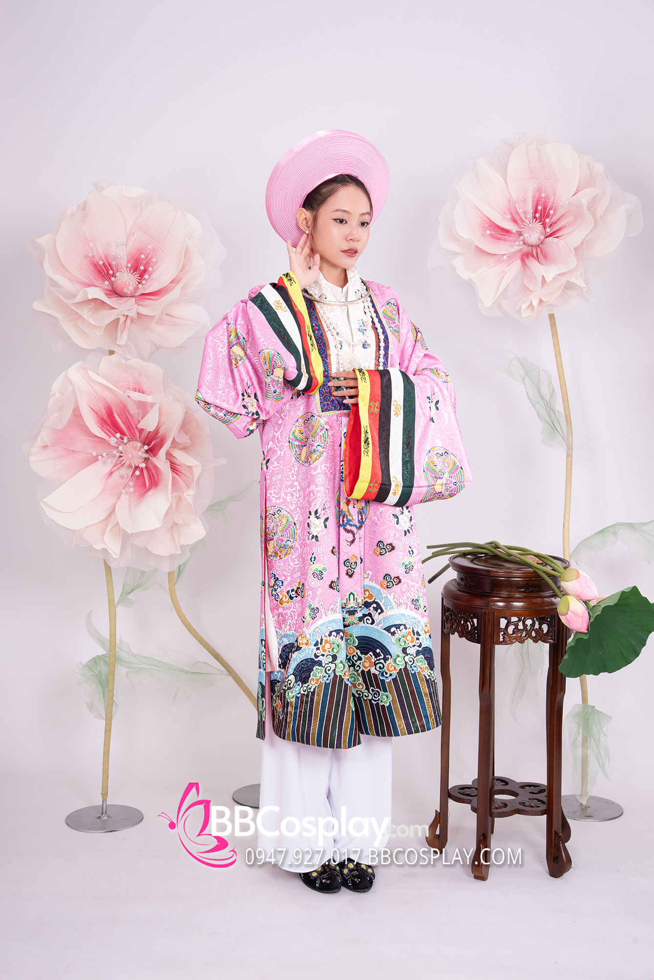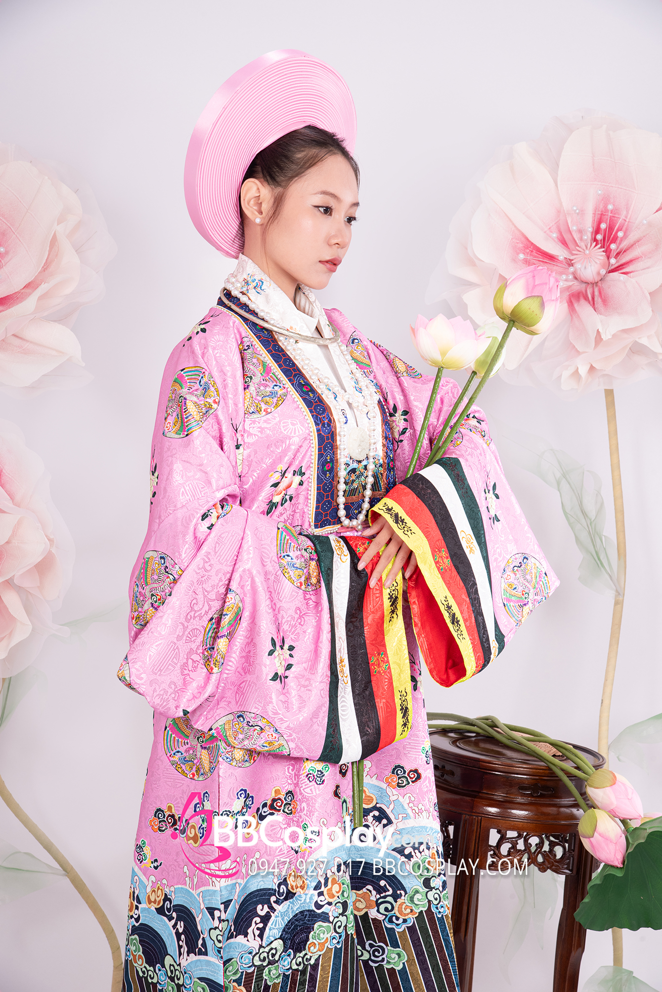 Trang Phục Nhật Bình Tím Hồng Vải Gấm