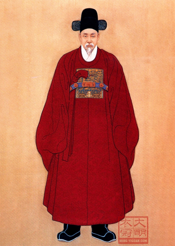 Tranh vẽ quan nhà Minh Giang Thuấn Phu mặc bào phục có Bổ tử