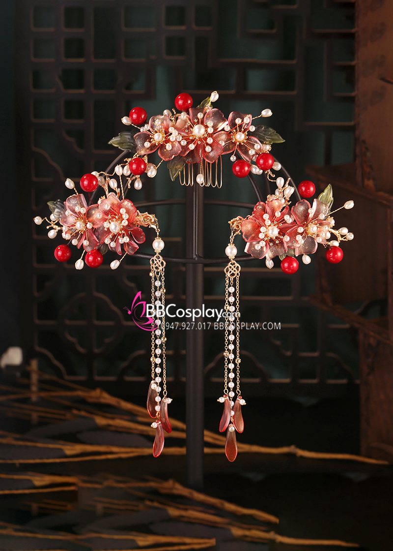 Bộ Trâm Cài Hằng Nga 5 Món Đỏ Thạch Anh