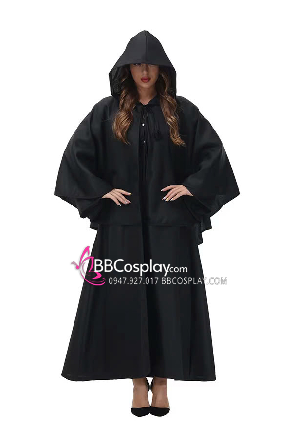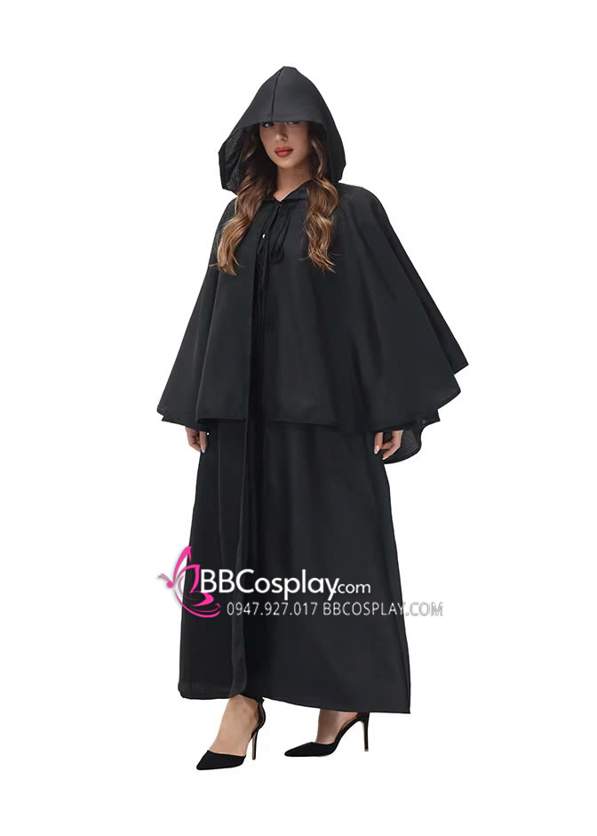 Áo Choàng Có Mũ Trùm Dáng Rộng Màu Đen