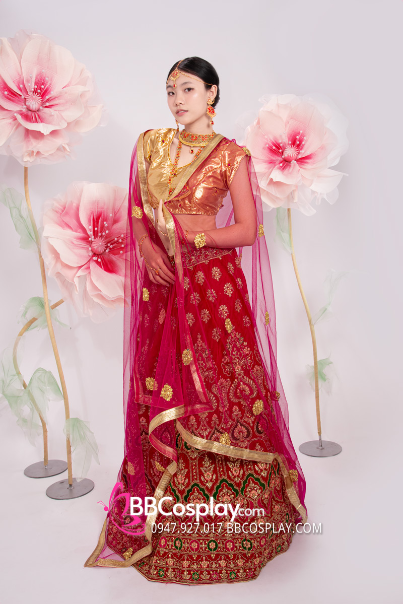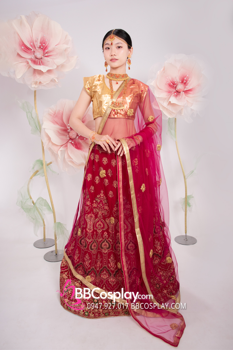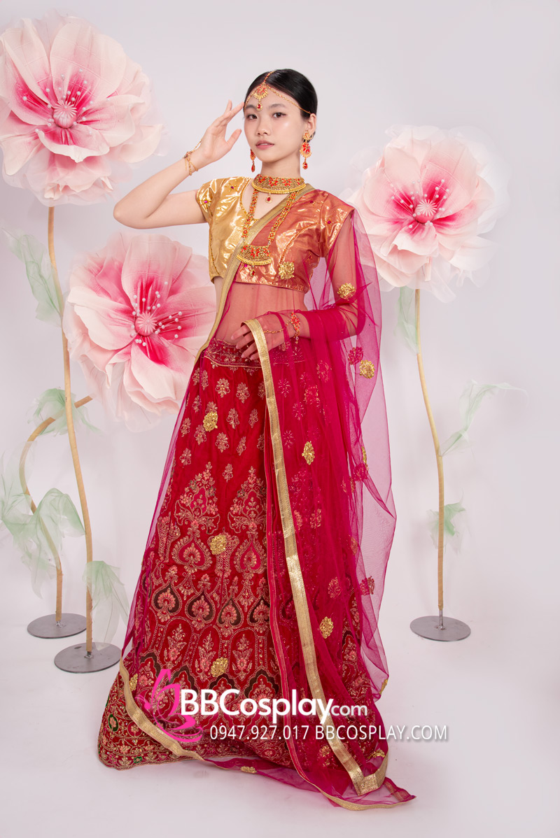 Trang Phục Ấn Độ Lahanga - Tone Hồng Áo Nhũ Vàng
