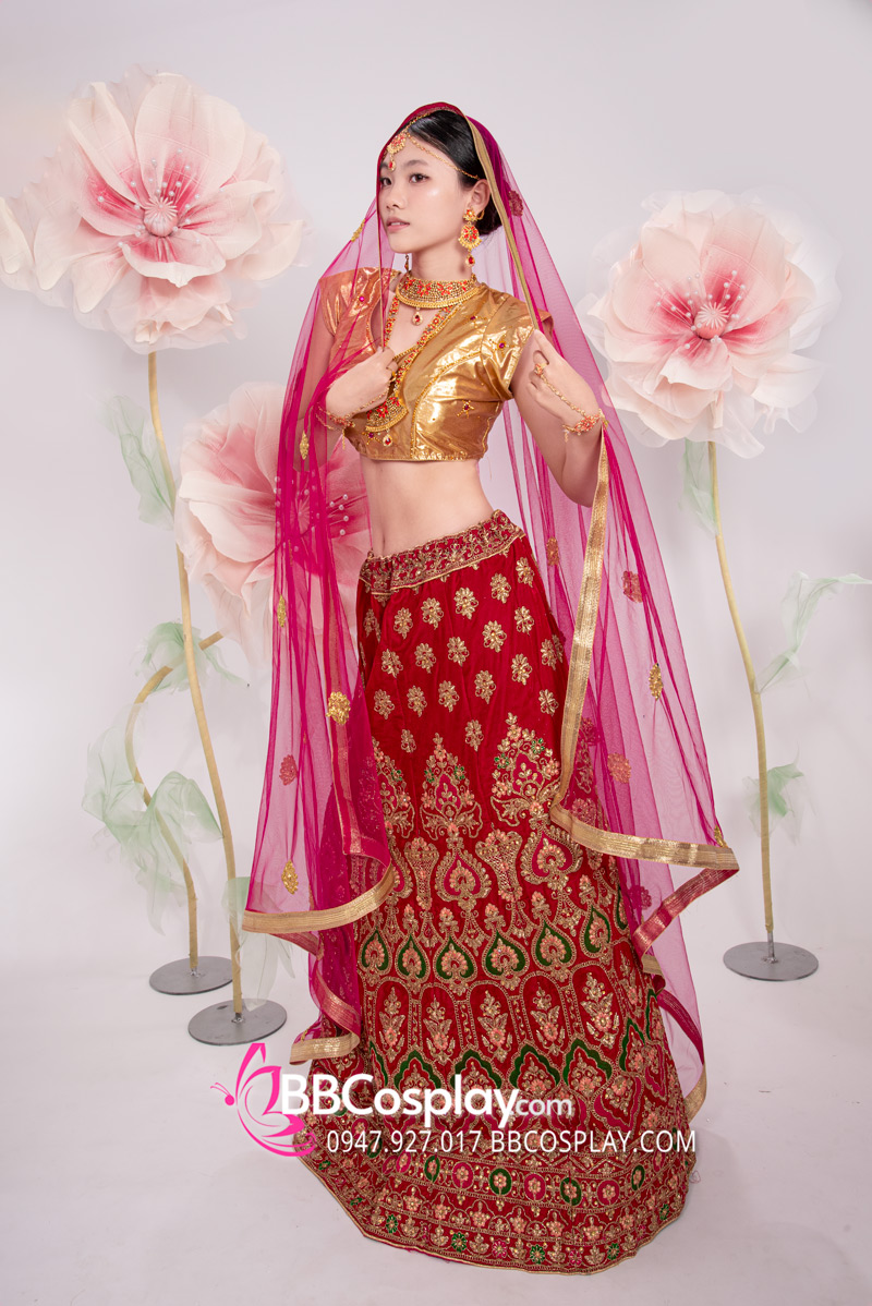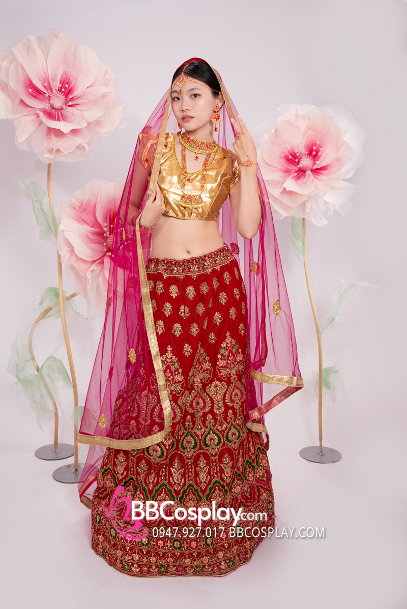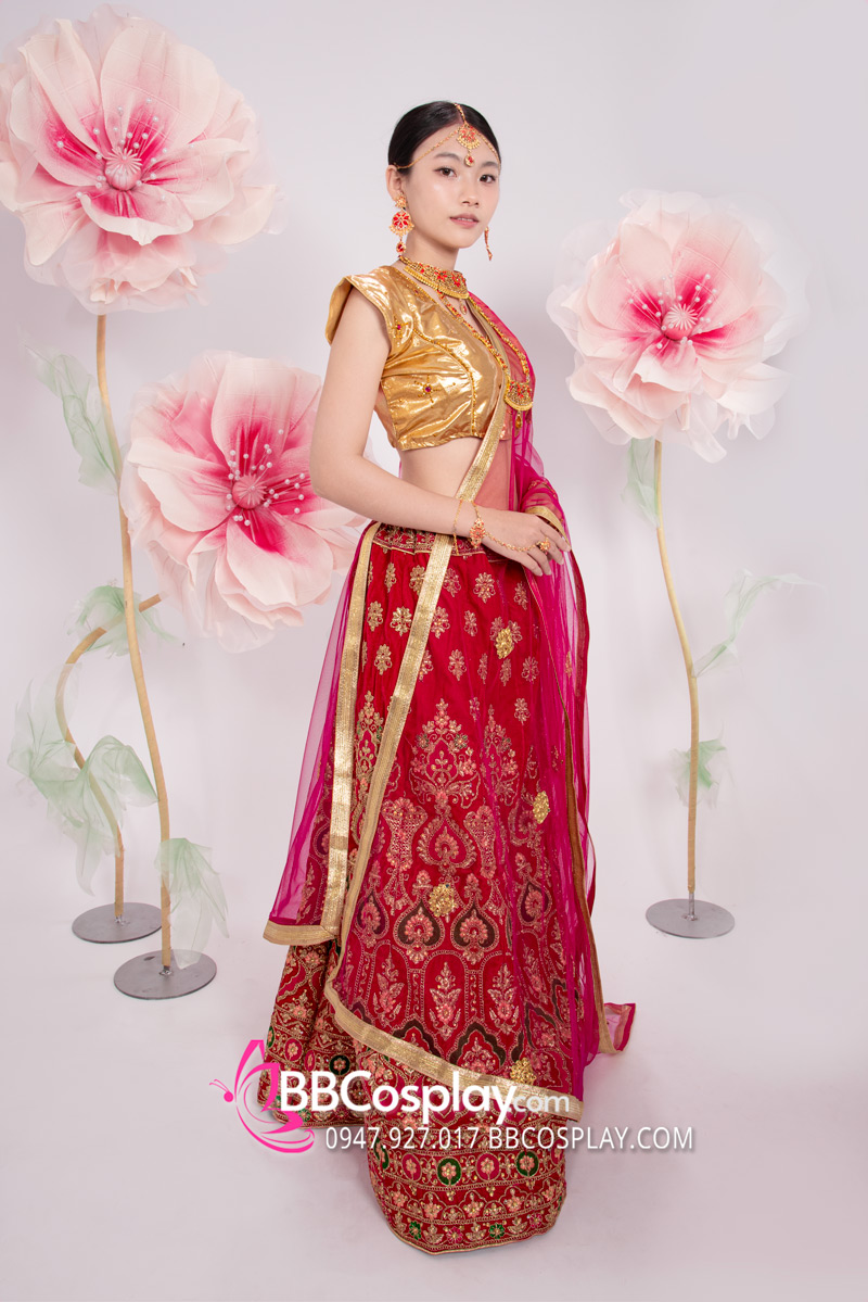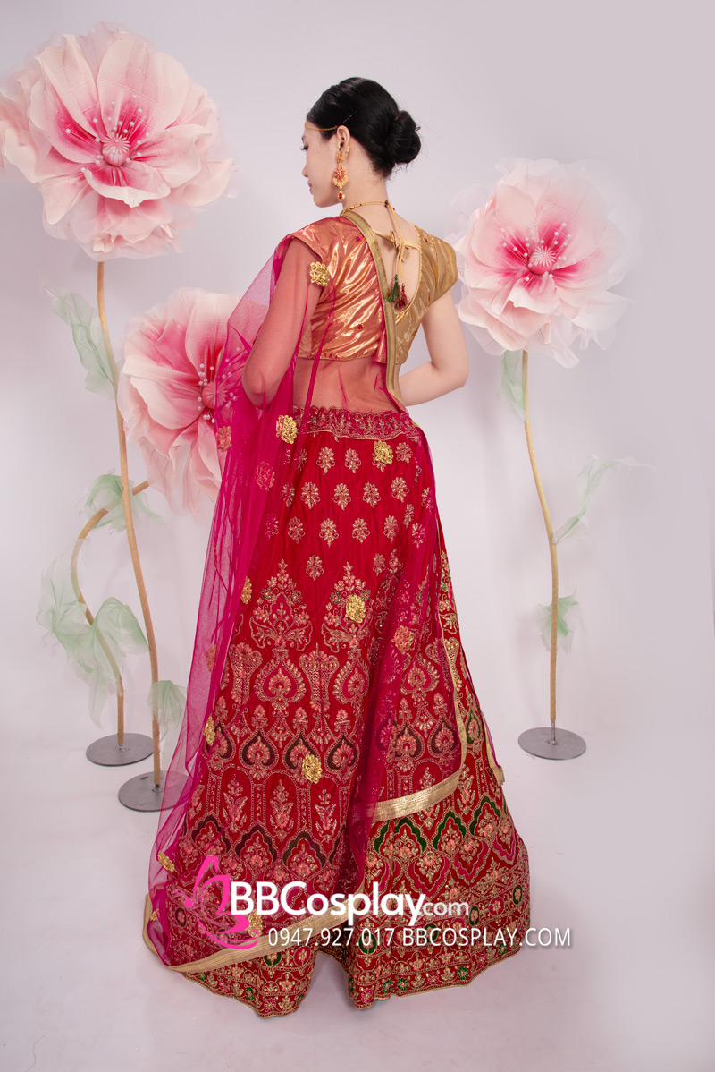 Trang Phục Ấn Độ Lahanga - Tone Hồng Áo Nhũ Vàng