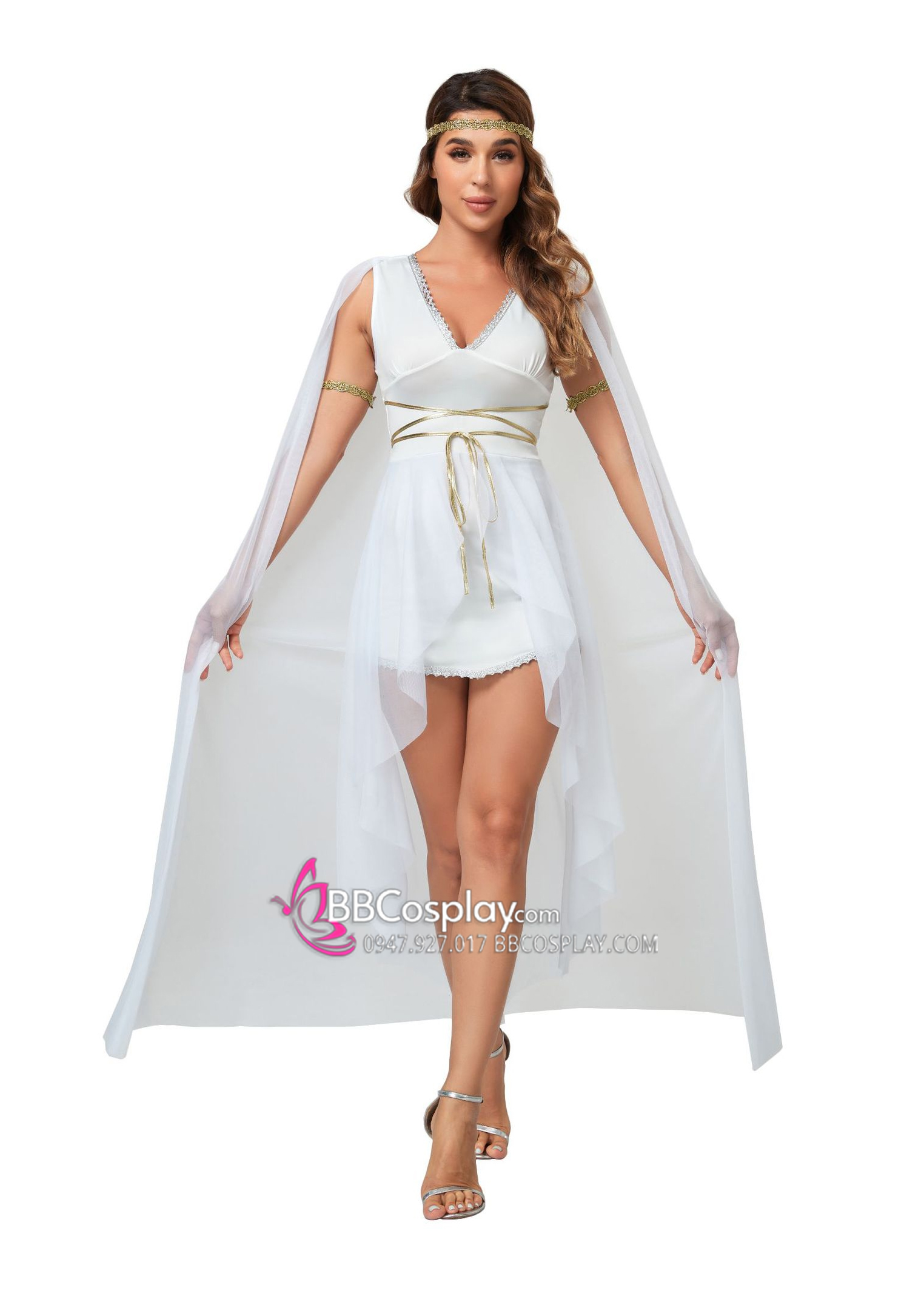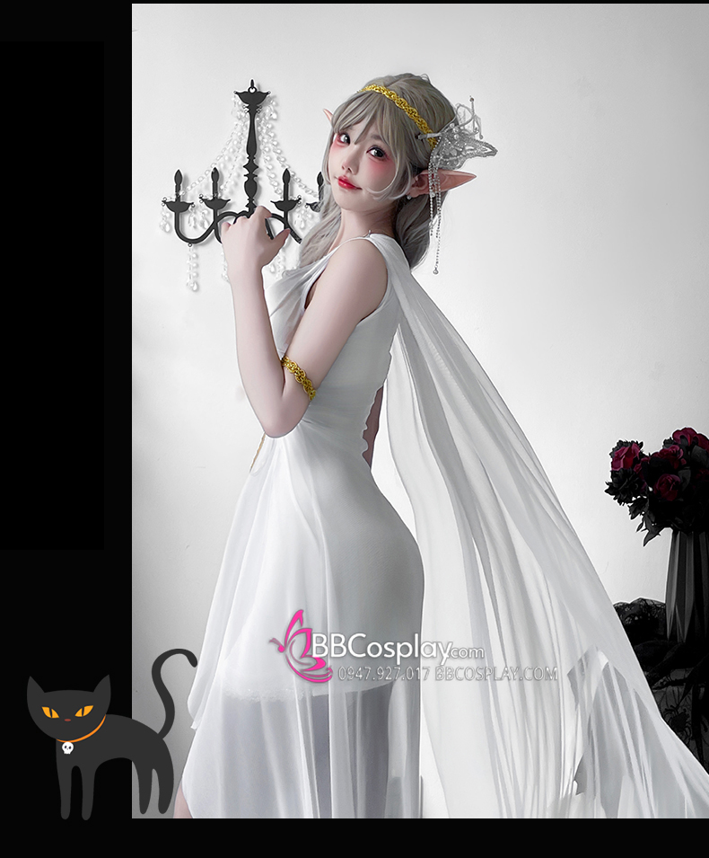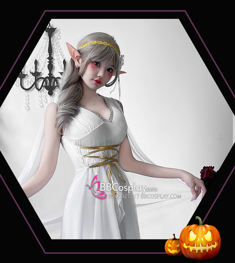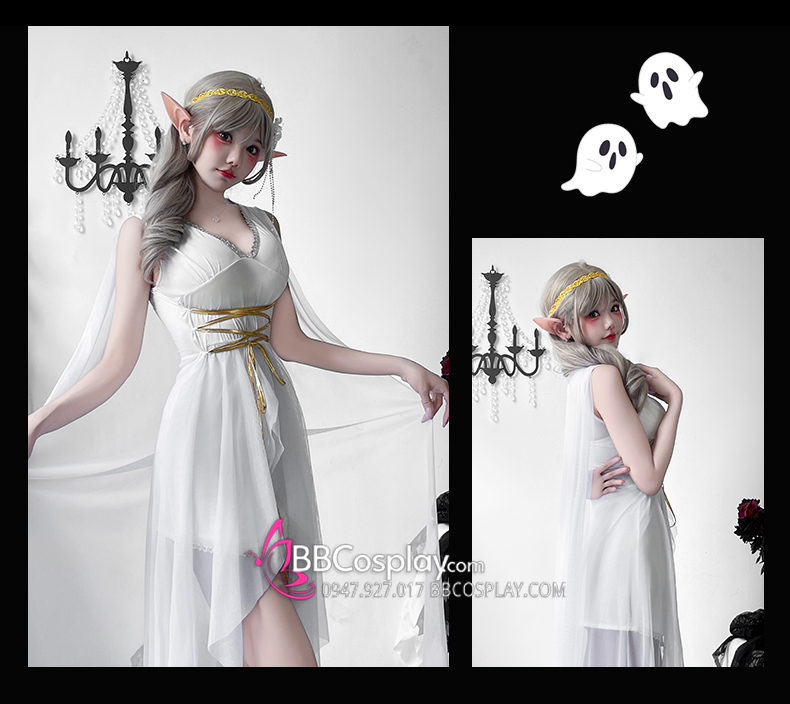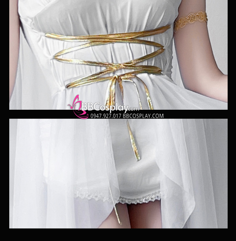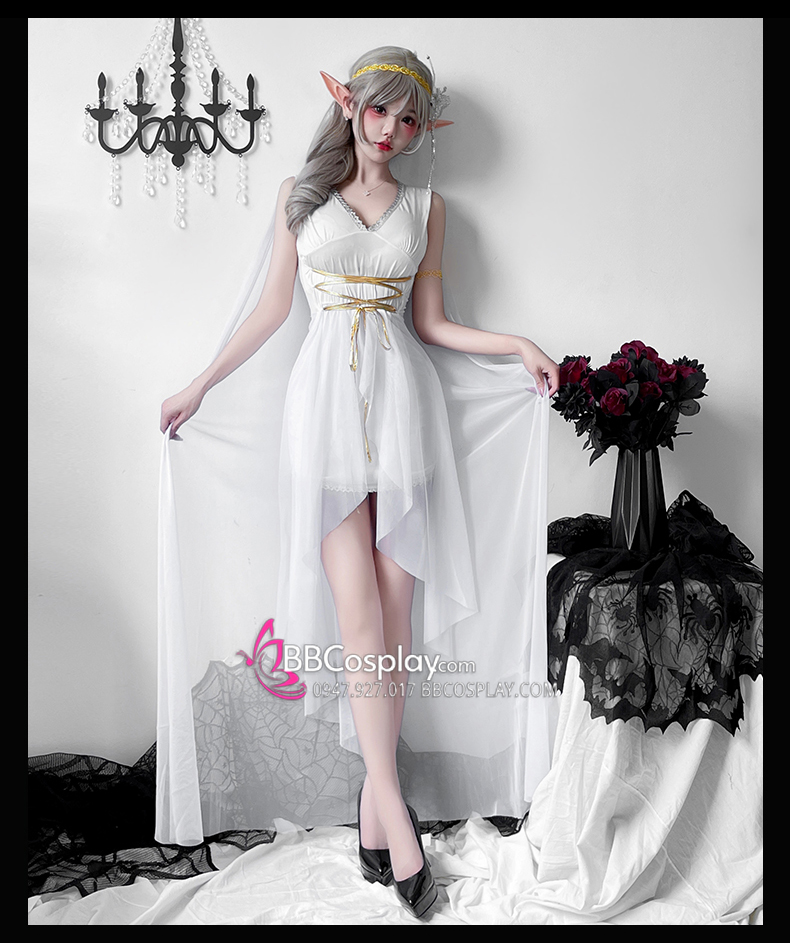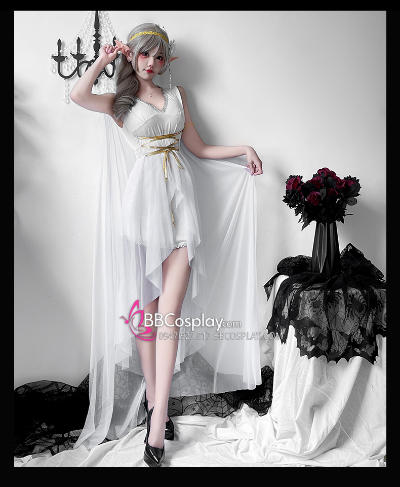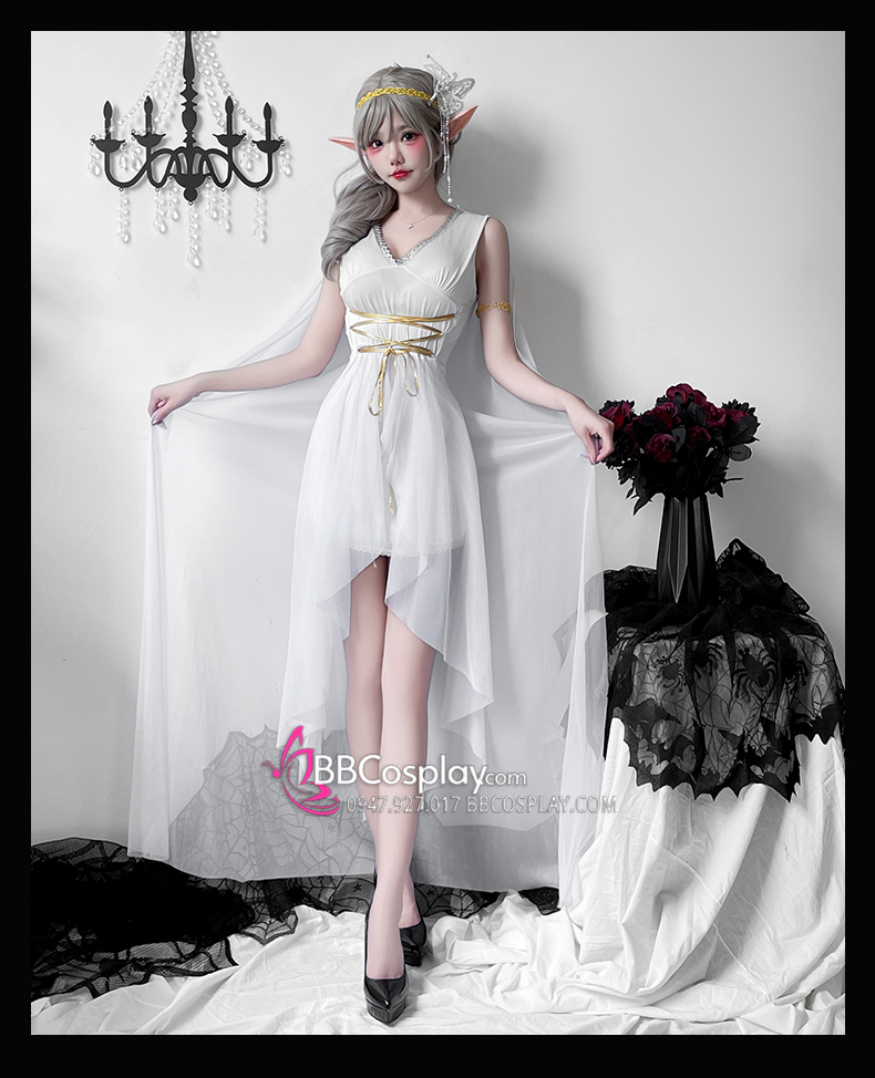 Trang Phục Nữ Thần Hy Lạp Trắng Viền Vàng