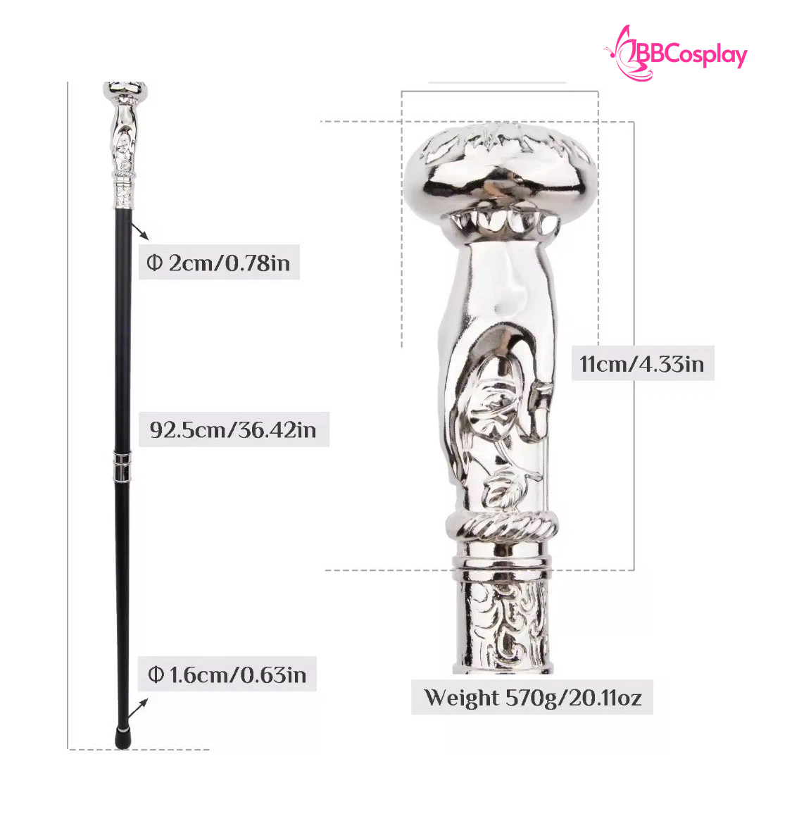 Gậy Quý Tộc Kim Loại Đầu Bàn Tay