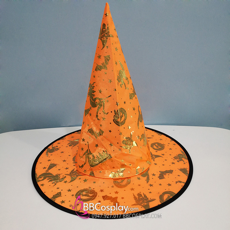 Nón Phù Thủy 1 Lớp Màu Cam Hình Bí Ngô Nhũ Vàng