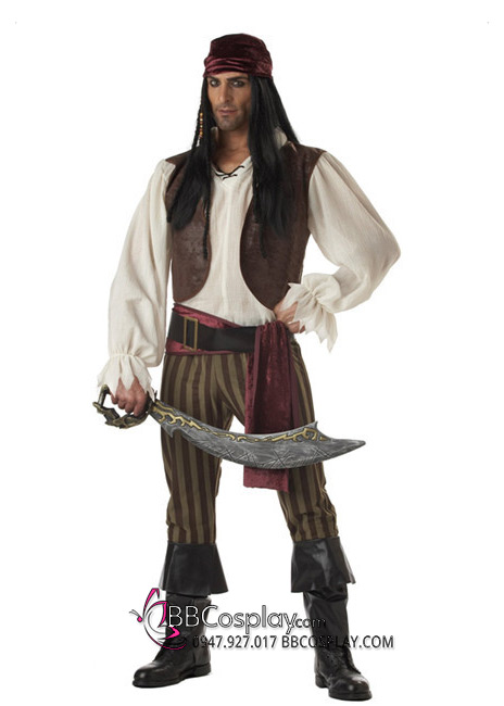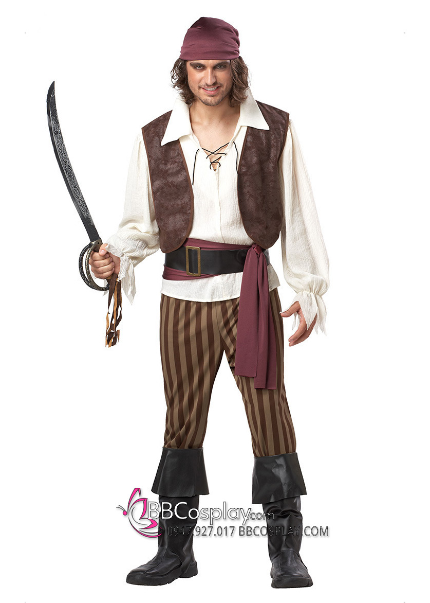 Trang Phục Hải Tặc Khoác Nâu Quần Sọc Vàng Nâu