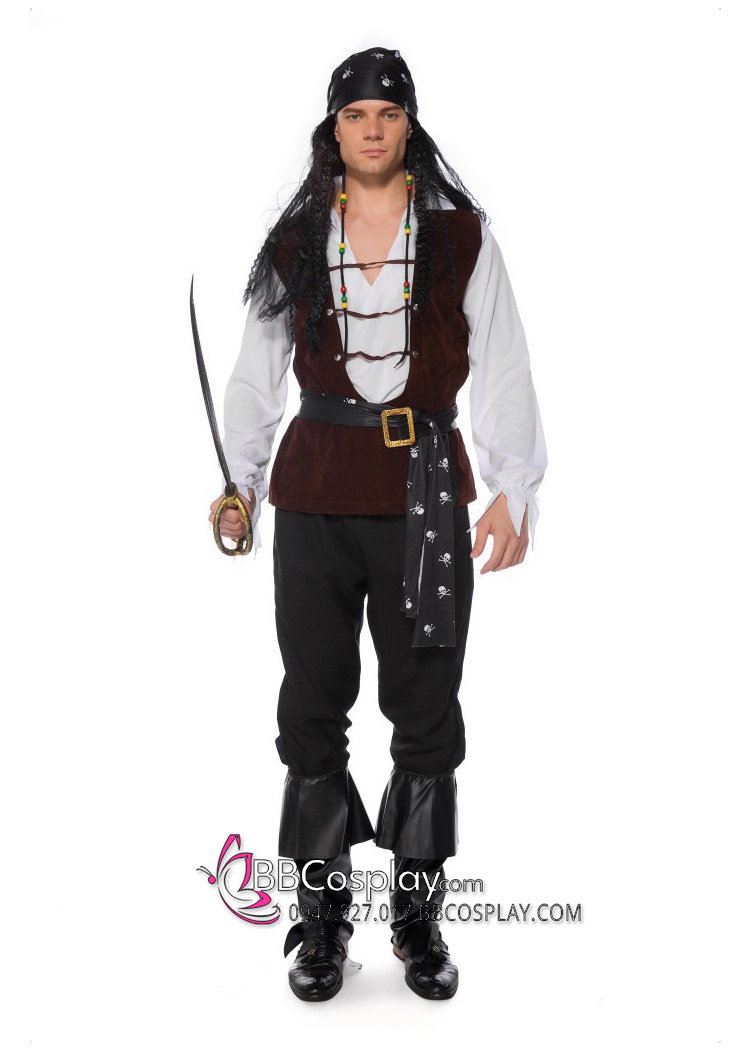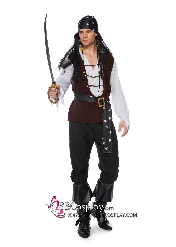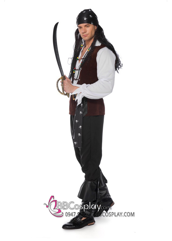 Trang Phục Cướp Biển Áo Trắng Ghi Lê Nâu