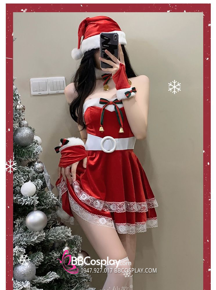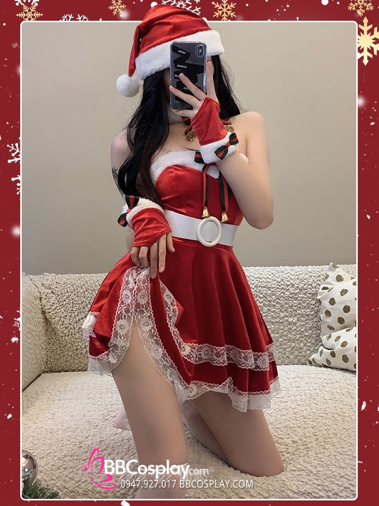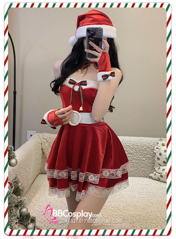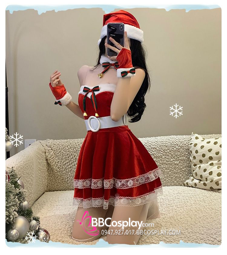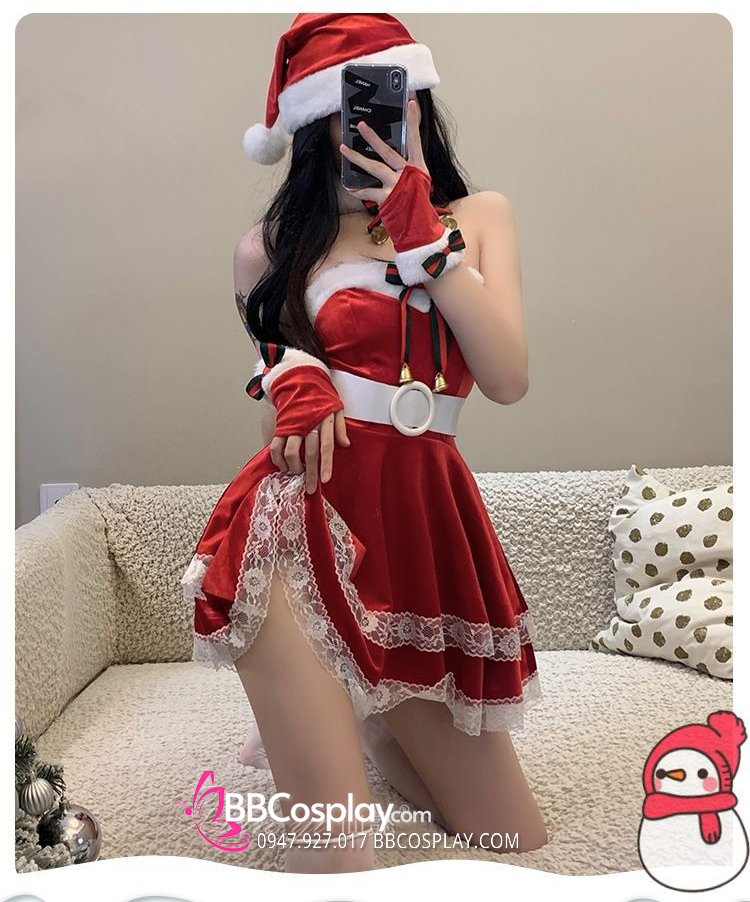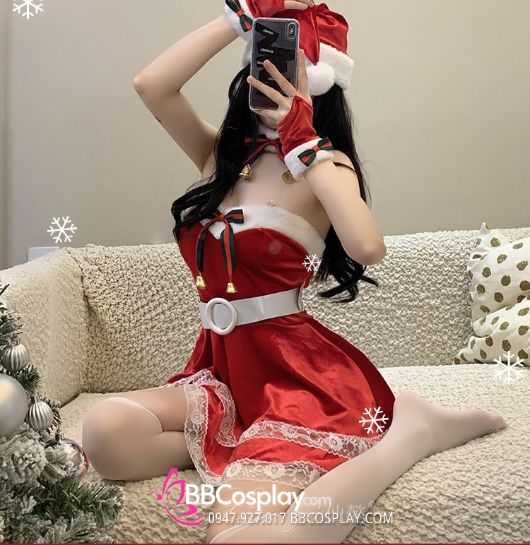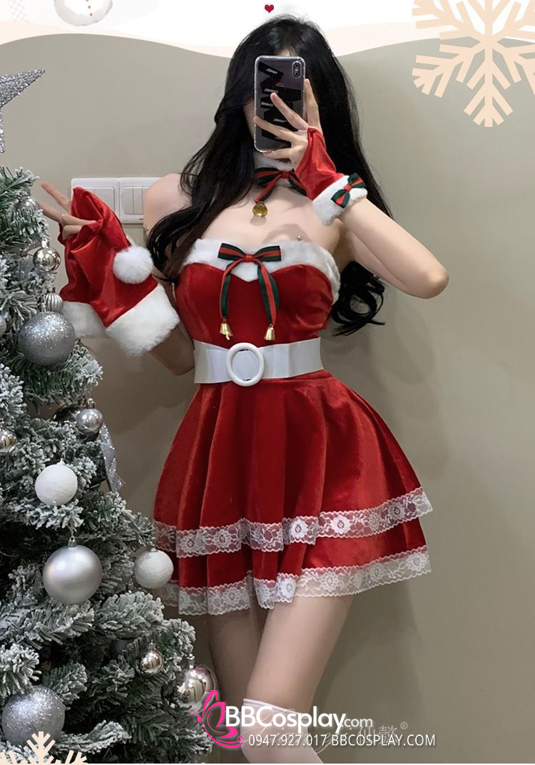 Trang Phục Giáng Sinh Cúp Ngực Thắt Lưng Trắng