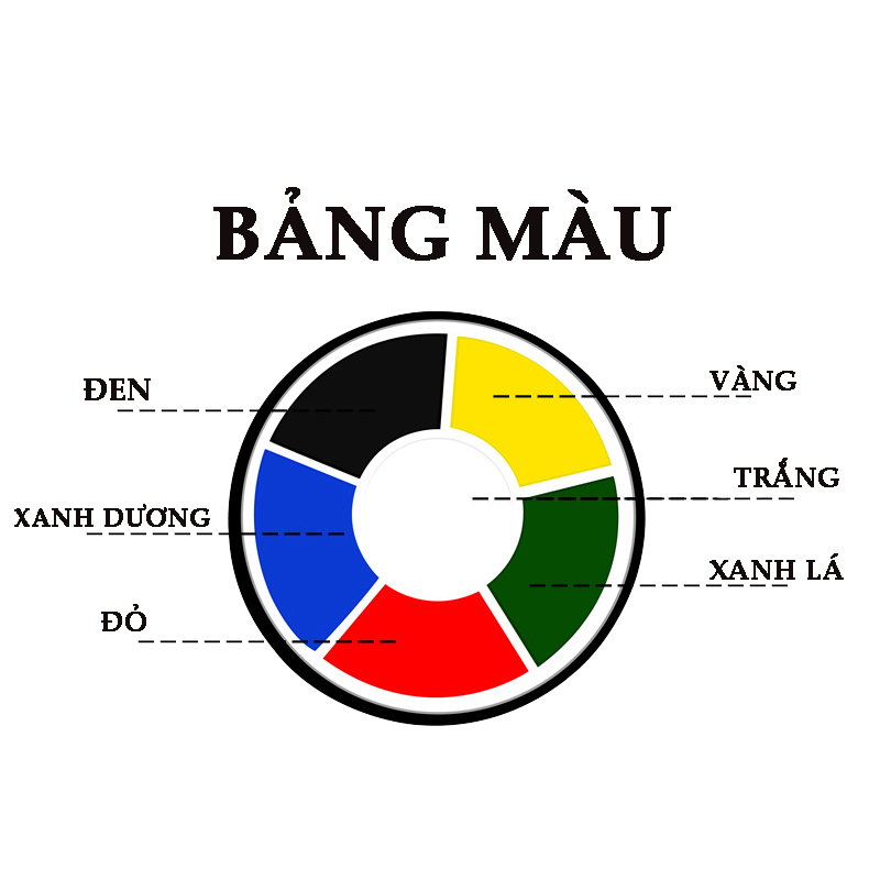- Màu sắc: đen - vàng - đỏ - trắng - xanh dương - xanh lá