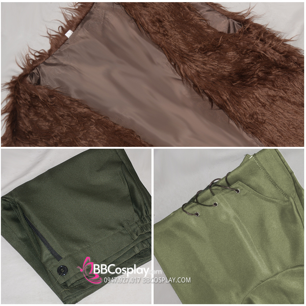 - Thành phần: áo xanh + khoác lông + quần + thắt lưng + 2 dây cột tay