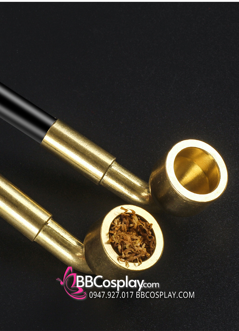 Phụ Kiện Chụp Hình Cưới - Tẩu Thuốc Cán Đen Dài 35Cm Tặng Kèm Túi Thơm Và Dây Đồng Tâm